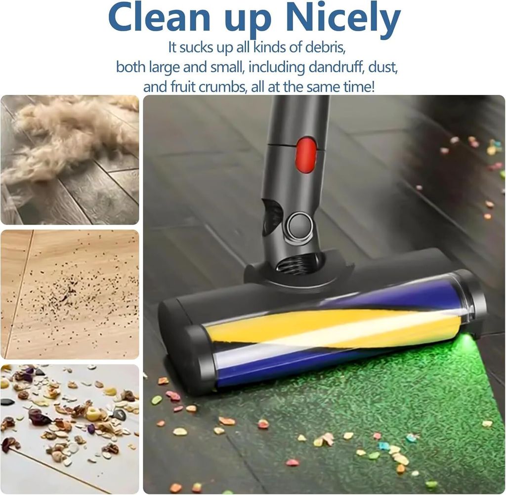 Mach deinen Dyson noch besser mit dieser LED-Bodenbürste! Perfekt kompatibel mit V7, V8, V10, V11, V12, V15 und sogar dem neuen G5 Modell. Die integrierten LEDs leuchten dunkle Ecken aus - so siehst du jeden Staubkrümel unter dem Sofa! Die flexible Lenkung macht das Saugen super einfach und entlastet deine Arme. Egal ob Teppich, Fliesen oder Parkett - diese Bürste meistert alles. Das leichte Design ist perfekt für längere Reinigungsaktionen. Und das Beste: Kein lästiges Verheddern von Haaren mehr! Einfach den alten Bürstenkopf abnehmen und diesen neuen aufstecken - mehr Aufwand ist nicht nötig. Dein Dyson fühlt sich an wie neu und du sparst dir teures Original-Zubehör. Probier's aus und erlebe, wie viel gründlicher Staubsaugen sein kann!