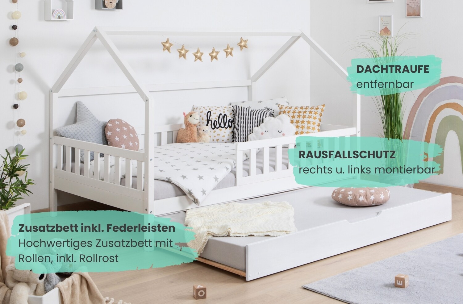 • Dolamaní Bodenbett 90x200cm Für 2 Kinder - Kiefernholz Weiß