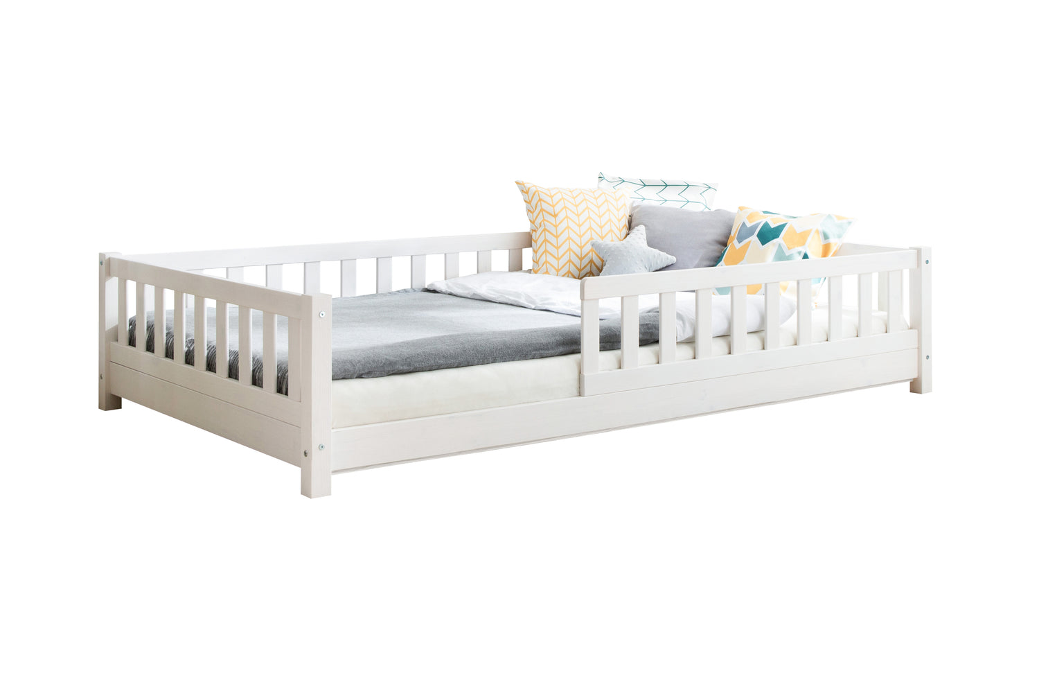Dolamaní Bodenbett 90x200cm Für 2 Kinder - Kiefernholz Weiß
