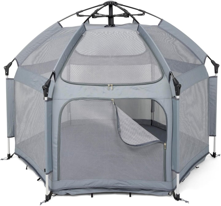 Wow, diese PETY Bodenmatte macht jeden Laufstall zur Wohlfühloase für deinen Hund! Mit 2cm Dicke im aufgeblasenen Zustand bietet sie super Komfort auf jedem Untergrund. Das Geniale: Sie bläst sich selbst auf - einfach die Ventilkappe drehen und schon ist sie einsatzbereit! Keine Pumpe nötig. Perfekt passend für den großen PETY Laufstall mit 150x100cm, aber auch allein als gemütliche Liegefläche verwendbar. Die wasserabweisende Oberfläche ist super praktisch - bei Verschmutzungen einfach mit einem Tuch, warmem Wasser und milder Seife abwischen. Für unterwegs kommt eine Transporttasche mit, in der du die Matte platzsparend verstauen kannst. Sie lässt sich sogar um den zusammengepackten Laufstall wickeln. Dein Hund wird diese weiche Unterlage lieben - ob zu Hause, im Urlaub oder beim Besuch. Einfach aufblasen, ins Laufgitter legen und sich über den zufriedenen Vierbeiner freuen! So geht gemütliche Hundehaltung.