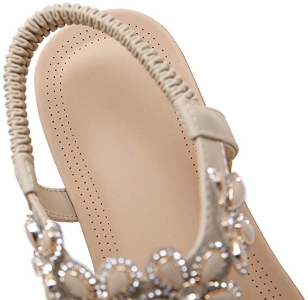 Die römisch inspirierten Riemchen mit funkelnden Strass-Perlen sehen einfach traumhaft aus. Und das Beste: Der praktische Reißverschluss hinten und die verstellbaren Knöchelriemen machen das Anziehen super einfach und sorgen für perfekten Sitz.