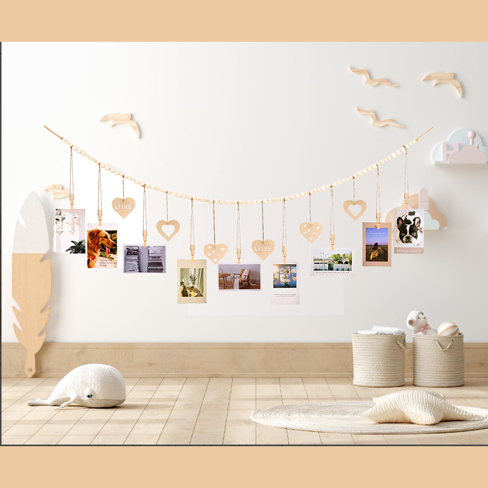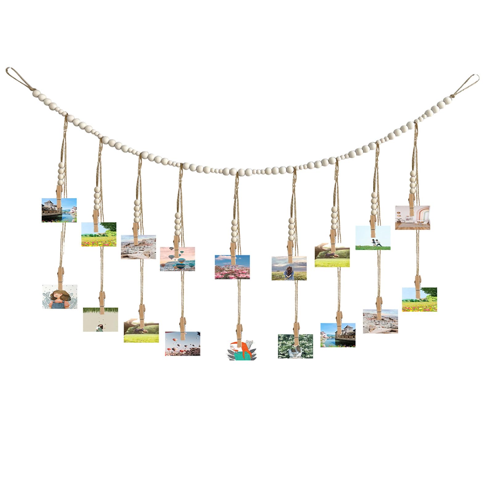 Hey Deko-Fans! Wollt ihr eure Erinnerungen stylisch präsentieren? Diese Boho-Fotowand ist genau das Richtige! Mit 120cm Gesamtbreite und 90cm langen Baumwollketten schafft sie sofort gemütliche Atmosphäre. Die 45 abnehmbaren Holzklammern halten eure Lieblingsfotos sicher fest - egal ob klein oder groß! Handgewebt aus Baumwollfaden mit natürlichen Holzperlen - nachhaltig und hochwertig. Einfach zu installieren: Aufhängen, Fotos einklammern, fertig! Perfekt fürs Schlafzimmer, Wohnzimmer, Büro oder Kinderzimmer. Schafft eine persönliche Note und ist ein toller Gesprächsstarter. Ideal als Geschenk für Geburtstage, Weihnachten, Hochzeiten oder den Einzug in eine neue Wohnung. Also, holt eure schönsten Momente aus den Alben und macht sie zum Blickfang an der Wand!