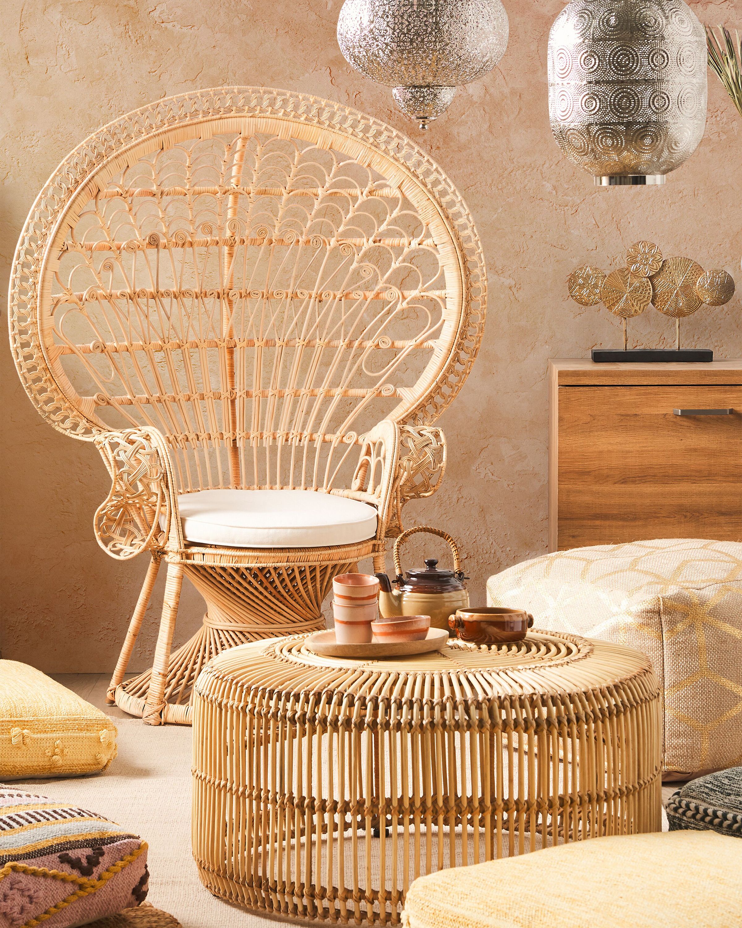 • Pfauenstuhl Aus Rattan - Boho Sessel Mit Kissen Für Indoor & Outdoor