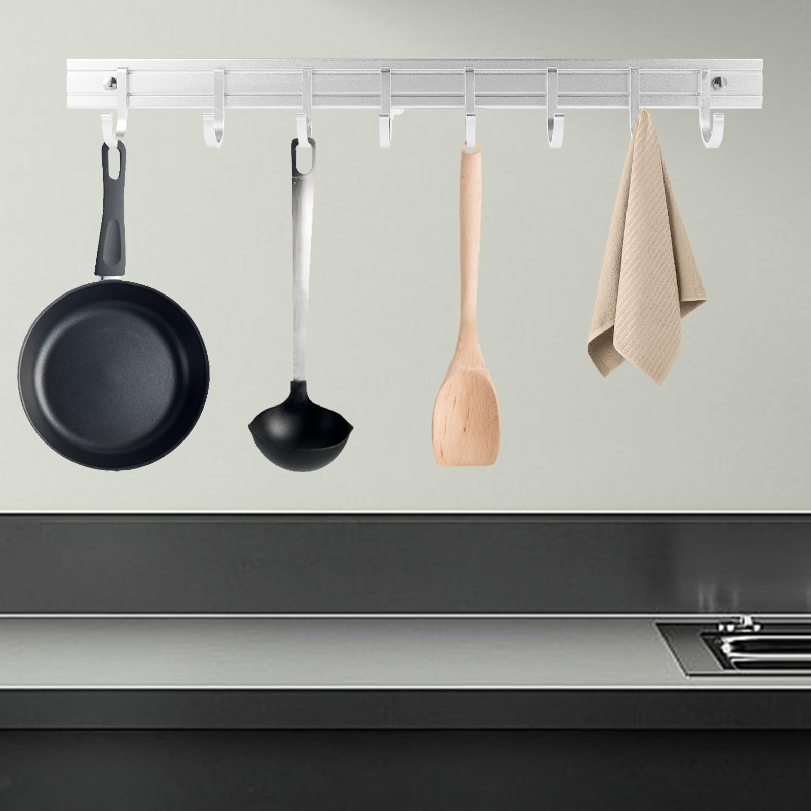 Ordnung in der Küche - ganz ohne Bohren! Diese 40cm Hakenleiste mit 8 beweglichen Haken klebst du einfach mit den starken Saugnäpfen an glatte Oberflächen. Einfach drücken, drehen - fertig in 10 Sekunden! Hält bis zu 20kg - da kannst du auch schwere Küchenutensilien problemlos aufhängen. Aus Aluminium mit TEP-Saugnäpfen - feuchtigkeitsbeständig, hitzebeständig und ölabweisend. Perfekt also nicht nur für die Küche, sondern auch fürs Badezimmer oder Schlafzimmer. Die Haken sind abnehmbar und beliebig verschiebbar - so organisierst du genau nach deinen Bedürfnissen. Haftet super auf Glas, Marmor, Fliesen oder Metall - alles, was glatt und nahtlos ist. Wenn du mal umziehst oder umdekorieren willst, einfach abmachen - keine Spuren bleiben zurück! Endlich mehr Stauraum ohne die Wand zu ruinieren. Ideal für Mieter oder alle, die ihre Wände schonen wollen. Einfach, clever und mega praktisch!