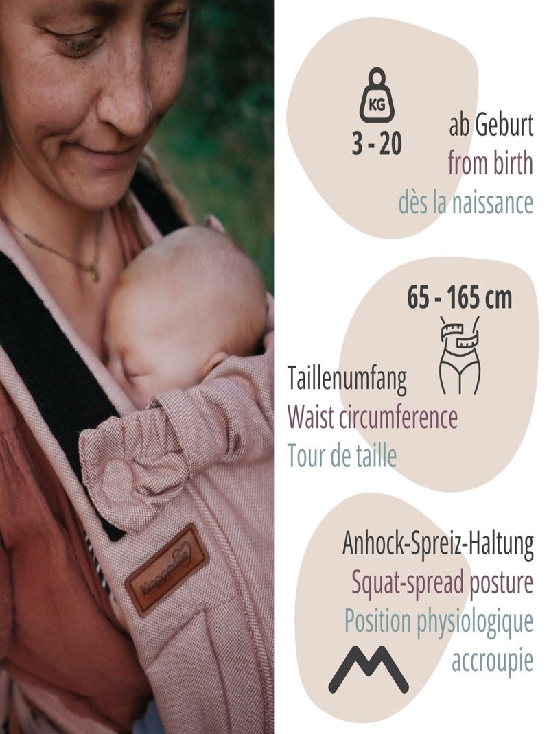 Für eine besondere Nähe zu deinem Baby! Die Hoppediz Bondolino Babytrage ist ergonomisch, bequem und super einfach zu handhaben. Mit nur einer Schnalle am Hüftgurt und geknoteten Schulterträgern passt sie sich perfekt an jeden Körper an. Die verstellbare Stegbreite (15-43cm) sorgt für die gesunde M-Position, die die Hüftentwicklung optimal unterstützt. Von Geburt an bis ins Kleinkindalter nutzbar - und das als Bauch-, Hüft- oder Rückentrage! Das Gewicht wird gleichmäßig verteilt, was deinen Rücken schont. Einfach anlegen und die gemeinsame Zeit genießen!