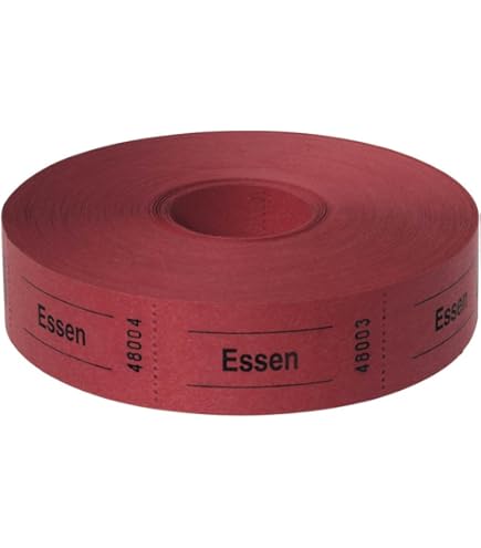 Hey, wenn du Events, Feste oder Gastro-Betrieb hast, kennst du das: Du brauchst praktische Bonrollen für Essensausgaben! Diese hier sind perfekt - im 2er Pack mit je 1000 Abrissen. Jeder Bon ist etwa 5,5x3,1 cm groß, perforiert und fortlaufend nummeriert. Super praktisch! Und das Beste: Sie sind dreisprachig bedruckt (Deutsch, Englisch, Französisch) - ideal für internationale Events. In kräftigem Grün mit der Aufschrift ESSEN. Die Rollen haben 12,8 cm Durchmesser und wiegen 225 g. Ob auf'm Volksfest, Firmenevent, Vereinsfest oder in der Mensa - damit behältst du immer den Überblick. Einfach abreißen, ausgeben und die Nummerierung hilft bei der Abrechnung. Deutsche Gastronomie-Qualität die einfach funktioniert!