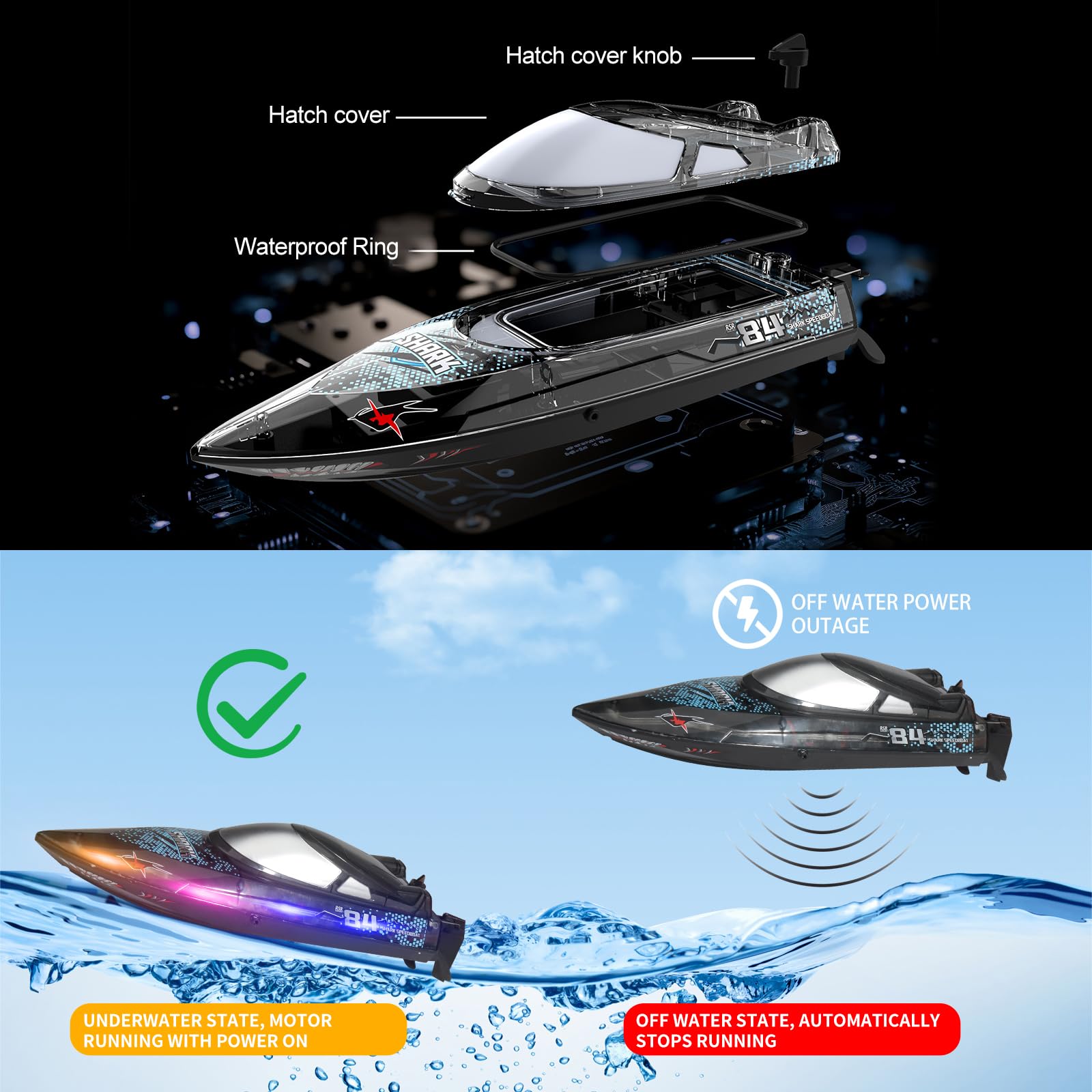 • RC Hai Boot Mit LED - Ferngesteuertes Schnellboot 30km/h 2,4GHz Für Kinder