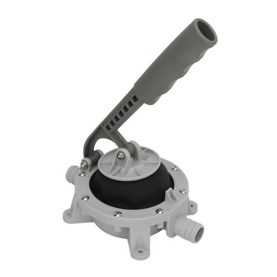 Der abnehmbare 2-Positionen-Griff gibt dir guten Hebel und die Pumpe passt für Schläuche mit 33mm Durchmesser. Mit nur 280mm Gesamtlänge ist sie handlich und findet auch in engen Bootsräumen Platz. Der einfache Klemmring macht Reinigung und Wartung zum Kinderspiel.