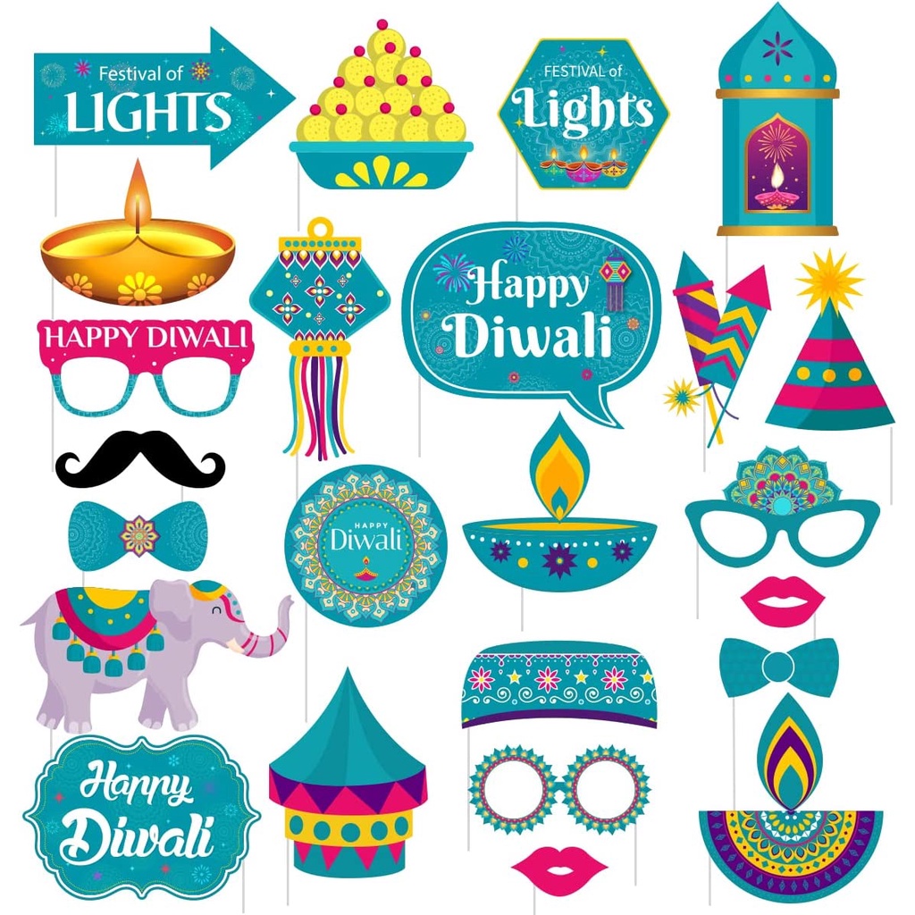 Mach deine Diwali-Feier unvergesslich! Dieses bunte Set mit 30 indischen Foto-Requisiten bringt jede Party zum Strahlen. Enthalten sind typische Diwali-Motive wie Öllampen, Rangoli-Mandalas, 'Happy Diwali'-Schilder und bunte Hüte - alles mit praktischen Holzstäbchen zum Festhalten.