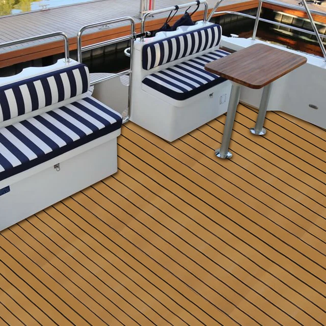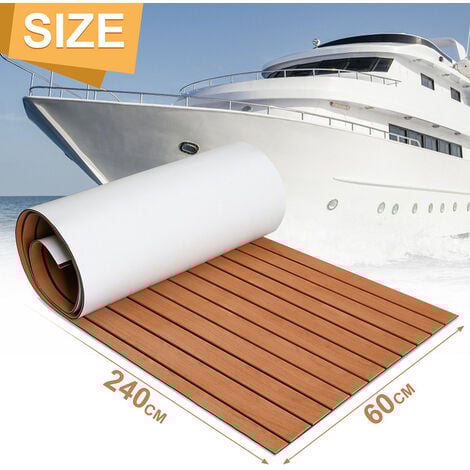 Mach dein Boot gemütlich mit diesem EVA-Schaumboden! Die selbstklebende Matte in edler Teak-Optik ist 6mm stark und gibt deinem Boot einen luxuriösen Look. Erhältlich in verschiedenen Breiten: 45cm, 60cm, 90cm oder 120cm bei 2,4m Länge. Einfach zuschneiden und auf den sauberen Bootsboden kleben - kein Profi nötig! Der EVA-Schaum ist rutschfest, salzwasserbeständig und schalldämmend. Perfekt für Yachten, Motorboote, Kajaks oder auch Wohnmobile. Leicht zu reinigen - einfach absaugen oder mit Hochdruck reinigen. Schützt den originalen Bootsboden und sorgt für angenehmes Barfußgehen. Verleiht deinem Boot das gewisse Etwas!