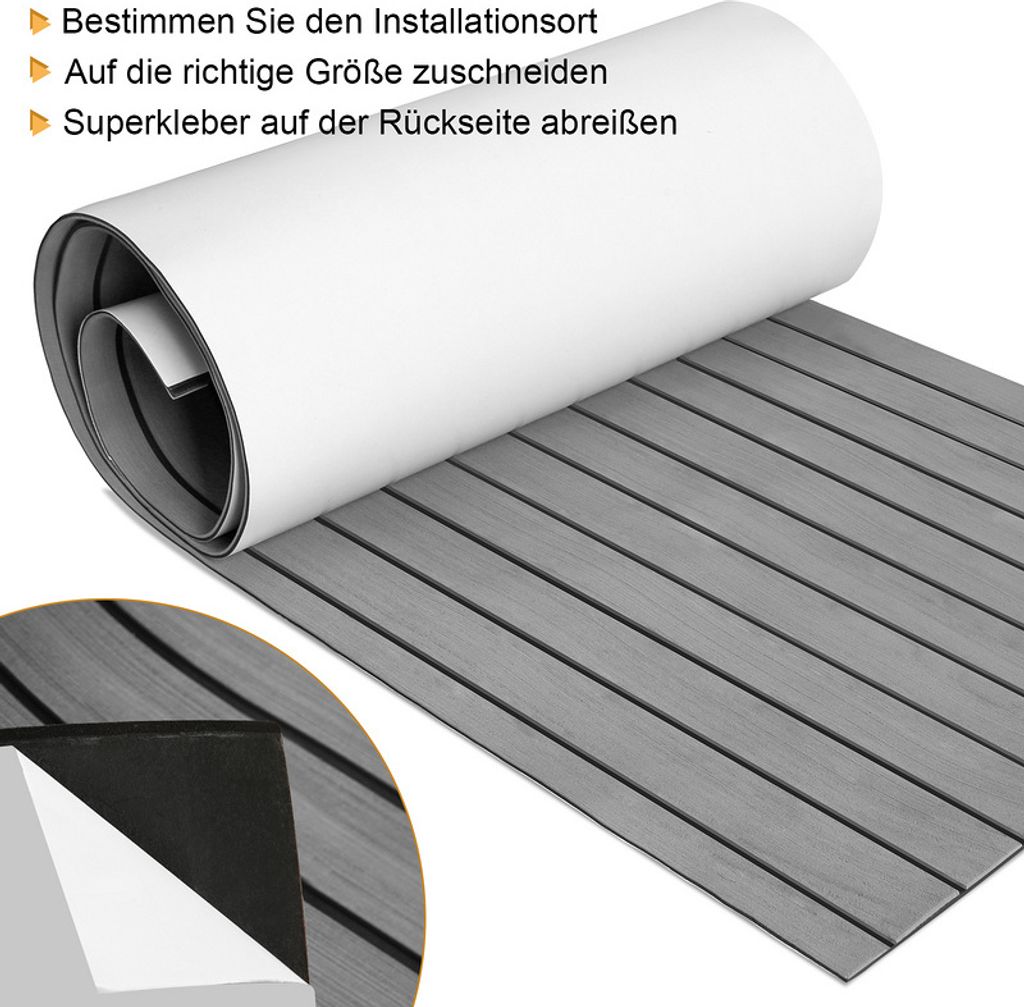 Willst du dein Boot aufwerten? Diese EVA-Bootsmatte in Teak-Optik ist genial! 240x90cm groß, 6mm stark - super bequem zu stehen. Selbstklebend - einfach auf den Bootsboden aufbringen.