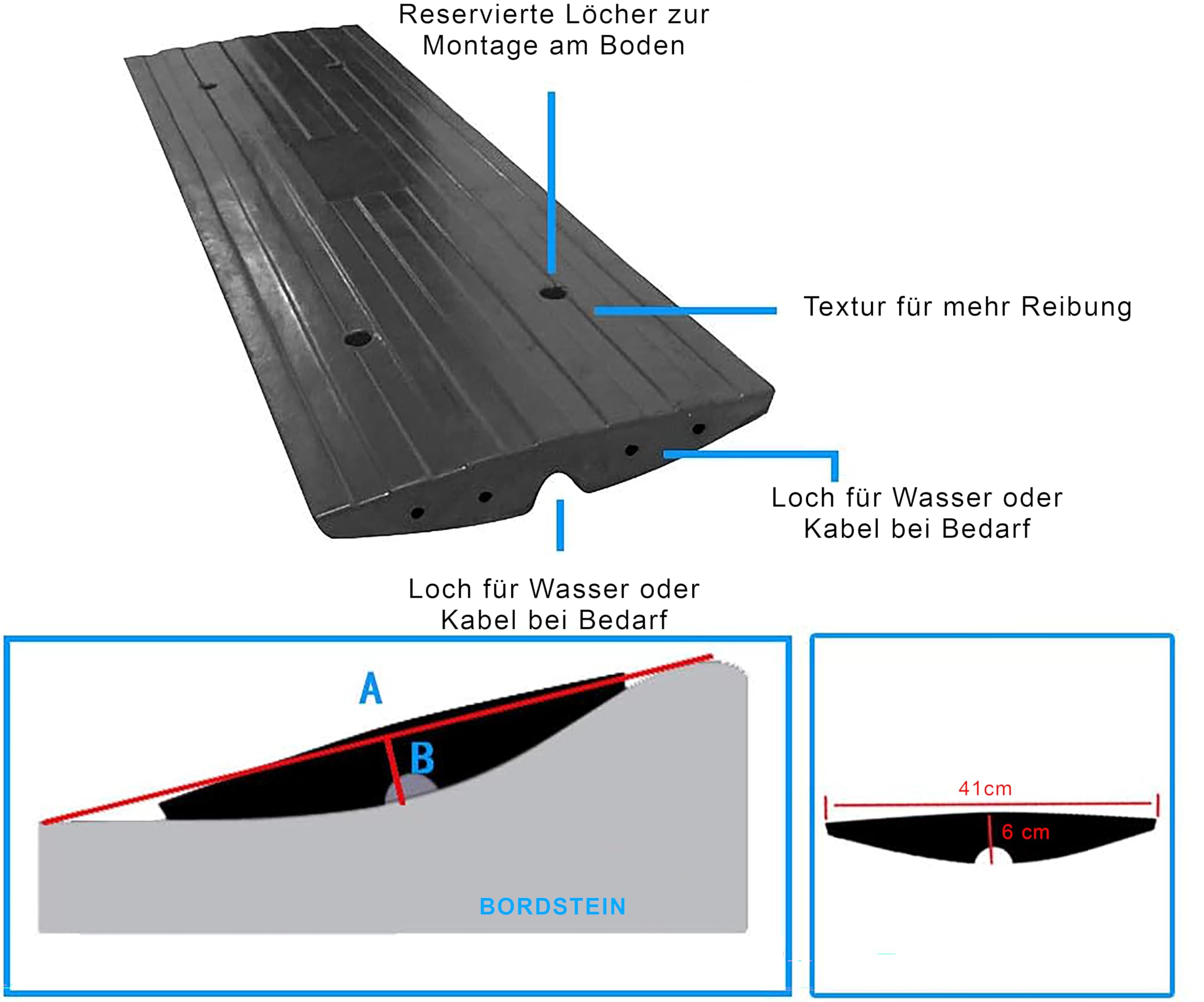 Endlich keine Sorgen mehr mit Bordsteinen und Einfahrten! Diese PYLE Auffahrrampen aus Vollgummi sind echte Alleskönner. Jede Rampe hält satte 5 Tonnen aus - da kannst du auch mit schwereren Fahrzeugen problemlos drüberfahren. Mit den Maßen 61x41x7 cm sind sie groß genug für sicheren Halt, aber noch handlich. Das wetterfeste Gummi macht die Rampen perfekt für den Dauereinsatz draußen, und die rutschfeste Oberfläche gibt auch bei Nässe sicheren Halt. Besonders praktisch: Die gelben Reflektorstreifen sorgen für bessere Sichtbarkeit bei Dunkelheit. Wenn du willst, kannst du die Rampen auch fest montieren - vorgebohrte Löcher und Schrauben sind schon dabei! Egal ob für deinen PKW, Anhänger, Lieferwagen oder sogar für Rollstühle und Rollatoren - diese Rampen erleichtern dir den Alltag ungemein. Einfach vor den Bordstein legen, langsam drüberfahren und schon sparst du dir Ärger mit Stoßstangen und Reifen. Das 2er-Set ist super, weil du damit auch breitere Übergänge abdecken kannst. Robust, zuverlässig und wirklich gut durchdacht - damit machst du nichts falsch!