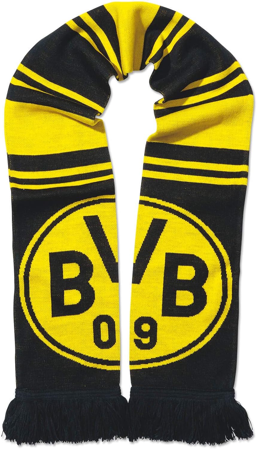 Echte Liebe in Gelb-Schwarz! Dieser offizielle BVB-Schal zum DFB-Pokalfinale 2016 ist ein Muss für jeden Dortmund-Fan. Perfekt fürs Stadion, Public Viewing oder einfach zum Anfeuern vor dem TV. Aus weichem Material und mit den Vereinsfarben - zeig deine Leidenschaft für die Borussen! • Material: Weiches Stoffmaterial • Design: BVB Vereinsfarben • Anlass: DFB Pokalfinale 2016 • Größe: One Size • Ideal für: Stadion, Fanartikel-Sammlung