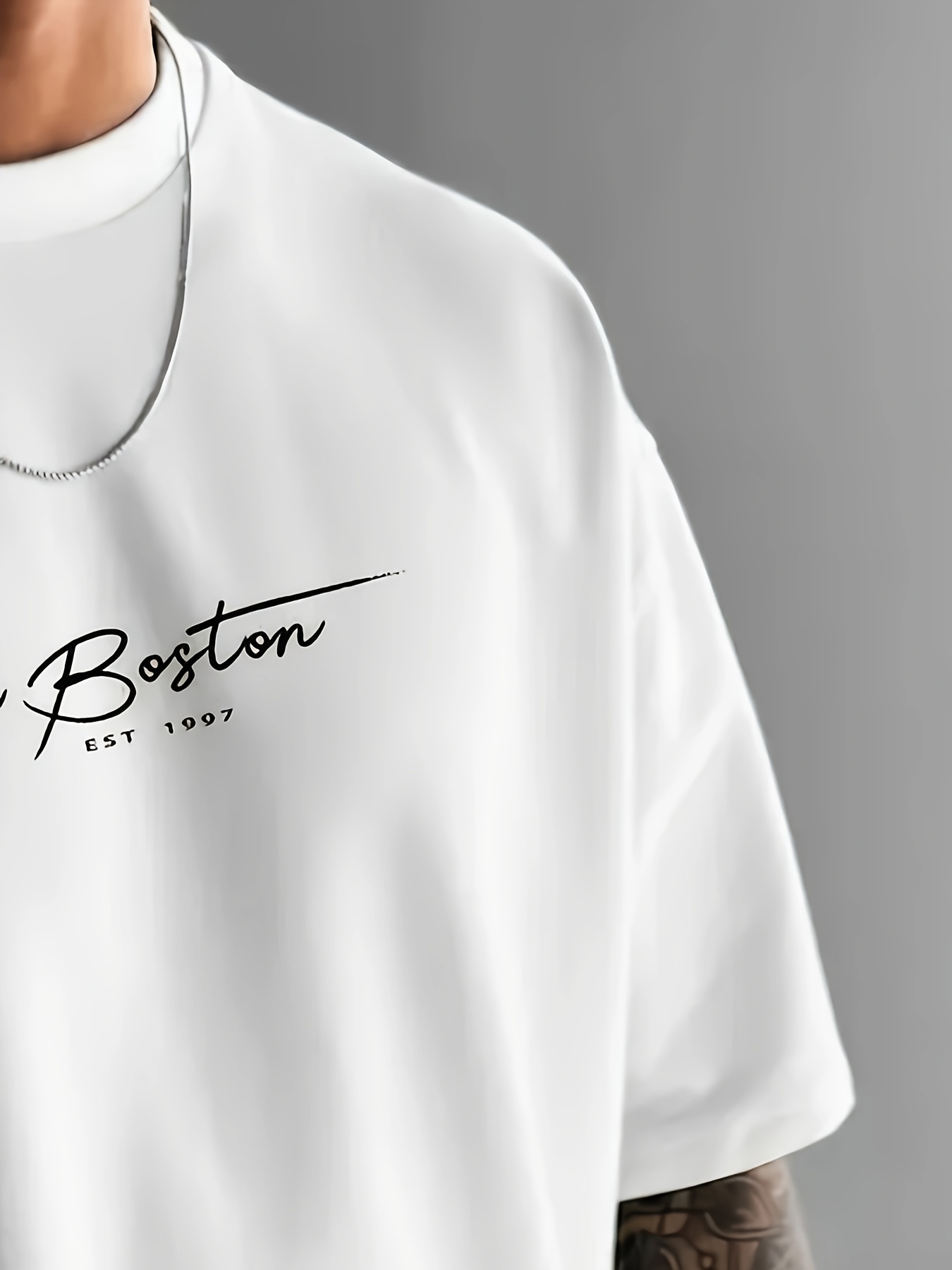 Ultra-bequem und total lässig! Dieses Oversize T-Shirt mit Boston Massachusetts Aufdruck wird dein neuer Lieblingsbegleiter. Perfekter Loose Fit - nicht zu eng, nicht zu weit, einfach ideal. Aus weicher Baumwolle, super angenehm auf der Haut. Perfekt für gemütliche Tage, Treffen mit Freunden oder einfach zum Relaxen. Der coole Streetwear-Look passt zu Jeans, Leggings oder Röcken. Einfach kombinierbar und immer stylisch. Ob für Kaffee mit Freundinnen oder einen Spaziergang durch die Stadt - mit diesem Shirt bist du immer gut angezogen. Wirf es einfach in die Waschmaschine und es ist wie neu. Ein Must-have für jeden Kleiderschrank!