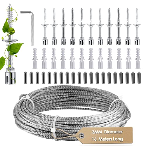 Perfekte Rankhilfe für deine Kletterpflanzen! Dieses komplette Bouiexye Set aus rostfreiem Edelstahl 304 hat alles, was du für stabile Kletterhilfen brauchst. Enthalten sind 15 Meter PVC-beschichtetes Drahtseil, 3 Spannschloss-Spanner (M5), 6 Drahtseilkauschen, 4 Klemmen, 2 Karabinerhaken, 6 Kunststoffanker, 6 Aluminium-Crimpschlaufen, 6 Schraubösen und ein Schraubenschlüssel. Das Drahtseil mit Edelstahlkern und PVC-Ummantelung ist doppelt geschützt und extrem langlebig. Die Spannschlösser ermöglichen einfaches Nachspannen bei Bedarf. Super vielseitig einsetzbar: Für Weinreben, Kletterrosen, Clematis oder andere Rankpflanzen. Aber nicht nur für den Garten - auch perfekt für Camping-Zelte, Festdekorationen oder zum Aufhängen von Laternen. Einfache Montage, stabile Haltbarkeit und absolut witterungsbeständig. Schaff deinen eigenen grünen Vorhang oder Spalier - deine Pflanzen werden's dir danken!