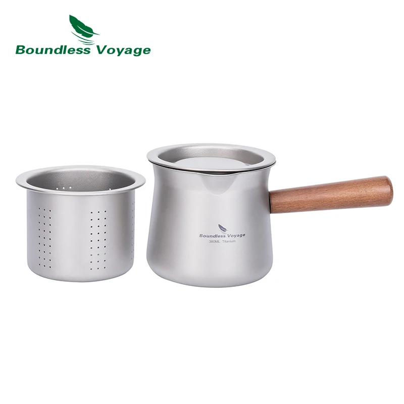 Für alle, die auch unterwegs nicht auf guten Tee verzichten wollen: das Boundless Voyage Titan Teeset! Aus 99,8 % reinem Titan, rostfrei und super leicht. Die Teekanne hat 380 ml Fassungsvermögen, einen hitzeschützenden Griff und einen doppelten Filter – keine Teeblätter im Mund! Drei kleine Tassen passen genau in die Kanne, alles zusammen verpackt in einer praktischen Tragetasche. Perfekt für Camping, Picknick oder einfach den Garten. Mach dir jederzeit eine frische Kanne – ob Grüntee, Kräutertee oder Kaffee – und genieße das Outdoor-Feeling mit Stil.