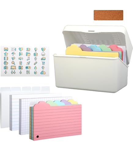 Perfekt organisiert lernen und arbeiten! Diese schwarze Karteikartenbox im A6 Format hat alles, was du brauchst. Mit 200 weißen und 150 bunten Karten plus 10 PP-Indexkarten bist du bestens ausgestattet. Die Box misst 15x9,5x8,5cm und bietet viel Platz. Inklusive praktischem Zubehör: Buchstabenaufkleber, Riegelringe, Holzlabel und sogar ein Schreibstift. Die Karten aus 110g starkem Papier sind doppelseitig beschreibbar - kein Durchdrücken der Tinte! Ideal für Vokabeln, Formeln, Notizen oder To-Do-Listen. Super für Schule, Studium oder Büro. Endlich Ordnung im Lernchaos - so macht Organisieren Spaß!
