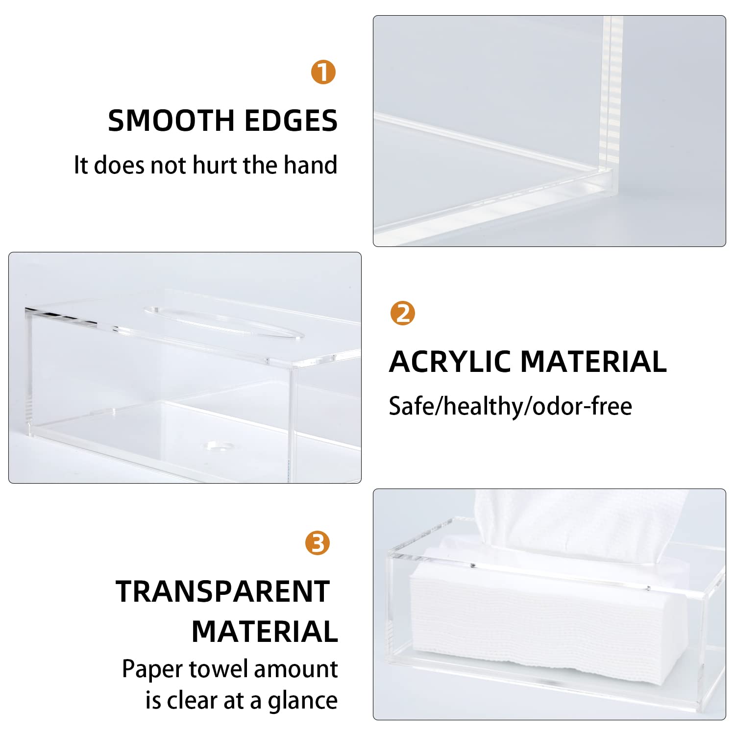 Diese handgemachte Acryl-Taschentuchbox ist nicht nur super praktisch, sondern sieht auch noch richtig stylisch aus! Mit den Maßen 25x13x9cm passt sie perfekt in Küche, Bad, Büro oder sogar ins Auto. Das hochwertige Acryl-Material ist schön schwer, sodass die Box nicht verrutscht wenn du ein Taschentuch herausziehst. Die Schiebeöffnung am Boden macht das Nachfüllen super einfach - kein Fummelei mehr! Und die glatte Oberfläche lässt sich easy mit einem feuchten Tuch reinigen. Besonders praktisch: Sie nimmt die meisten Standard-Taschentuchpackungen auf. Ob für Papiertücher, Servietten oder Kosmetiktücher - diese Box hält alles ordentlich und griffbereit. Ein schönes Geschenk für Freunde oder einfach um deinem Zuhause mehr Stil zu verleihen. Schönheit und Funktion in einem!