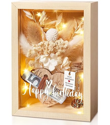 • Geldgeschenk Box Geburtstag - Holzbox Mit Trockenblumen Und Reagenzglas