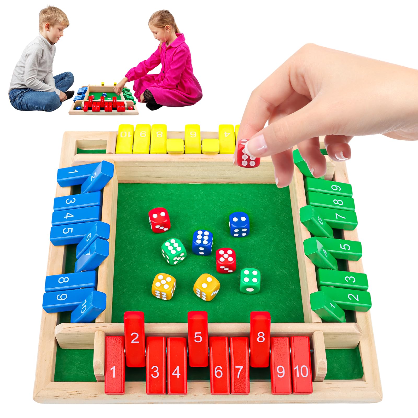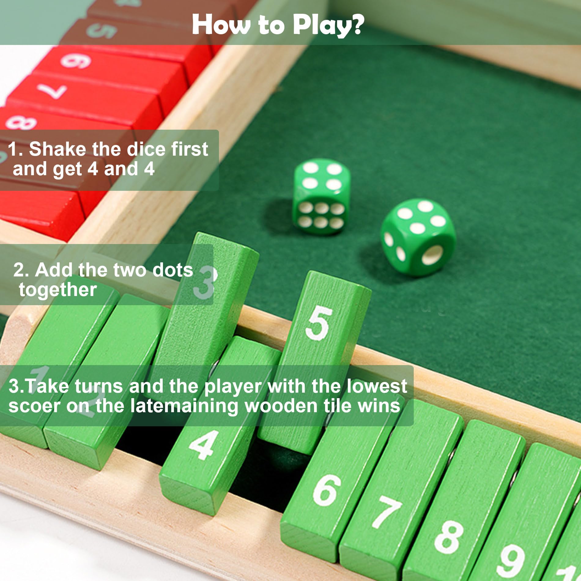 Dieses klassische Shut The Box Spiel aus Holz bringt die ganze Familie zusammen! Mit Platz für bis zu 4 Spieler wird es nie langweilig. Das Spielbrett hat auf jeder Seite 10 nummerierte Holzklappen, sodass mehrere Runden gleichzeitig gespielt werden können. Perfekt für Kinder ab 3 Jahren, aber auch Erwachsene haben ihren Spaß dabei. Das Tolle: Während die Kleinen spielen, lernen sie ganz nebenbei Mathe - Addition, Zählen und Zahlenverständnis werden spielerisch gefördert. Die Holzwürfel und das luxuriöse Würfelfach sind hochwertig verarbeitet, mit glatten Kanten für sicheren Spielspaß. Mit den Maßen 22x22x2,8cm ist das Spiel super kompakt und passt in jeden Reisekoffer. Ideal also für Camping, Picknicks oder Urlaub. Die Regeln sind einfach zu verstehen: Würfeln, Zahlen addieren und die passenden Klappen schließen. Wer am Ende die wenigsten Punkte hat, gewinnt! Ein perfektes Geschenk für Kinder von 4-8 Jahren, das nicht nur unterhält, sondern auch bildet. Hol dir dieses zeitlose Spiel und genieß quality time mit deinen Liebsten - ohne Bildschirme, nur mit viel Lachen und Spielspaß!