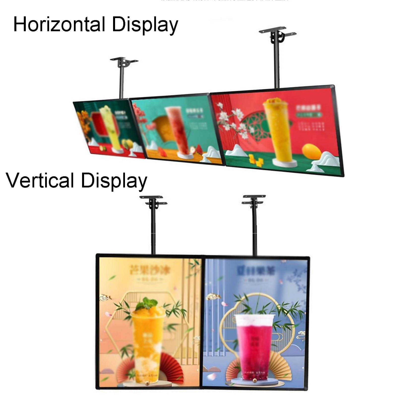 Perfekt für Cafés, Restaurants oder Geschäfte: Diese ultradünne LED Light Box macht deine Werbung oder Speisekarte zum Hingucker! Der Rahmen aus Aluminiumlegierung ist leicht und stabil, die Gesamtdicke beträgt nur 2,1 cm. Die Halterung ist flexibel einstellbar – Neigung von 0–90° und Höhe von 50–100 cm. Du kannst die Box sowohl horizontal als auch vertical aufhängen oder frei stellen. Die LED-Beleuchtung ist extrem hell und gleichmäßig, sodass deine Botschaft immer gut sichtbar ist. Im Lieferumfang: 1x LED-Menübeleuchtung, 1x Teleskopstange, 1x Zubehör. Achtung: Werbematerial ist nicht enthalten. Einfach montieren, Poster einsetzen und Kunden beeindrucken!