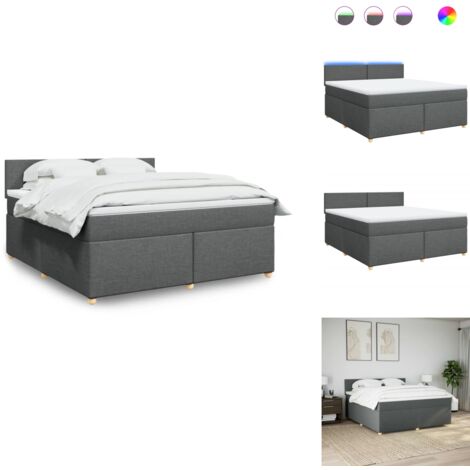 Endlich richtig gut schlafen! Dieses Sufrk Boxspringbett kommt komplett mit Matratze und Matratzenauflage - alles in einem Paket. Das dunkelgraue Polsterbett aus strapazierfähigem Polyester-Stoff sieht nicht nur edel aus, sondern ist auch super atmungsaktiv. Das praktische Kopfteil ist höhenverstellbar und gibt dir perfekten Halt, wenn du im Bett sitzt und liest oder fernsiehst. Die Matratze hat einen Taschenfederkern - das bedeutet: Sie passt sich optimal deinem Körper an und federt jede Bewegung ab, ohne dass dein Partner was merkt. Sie ist mittelfest, also ideal für Rücken- und Bauchschläfer. Der Matratzenschoner ist hautfreundlich und fühlt sich megaweich an. Maße: Bett 203x183x78/88 cm, Matratze 180x200x20 cm. Achtung: Aus Hygienegründen kann die Matratze nicht zurückgegeben werden, wenn die Verpackung geöffnet wurde. Alles wird mit Aufbauanleitung geliefert - easy zu montieren!