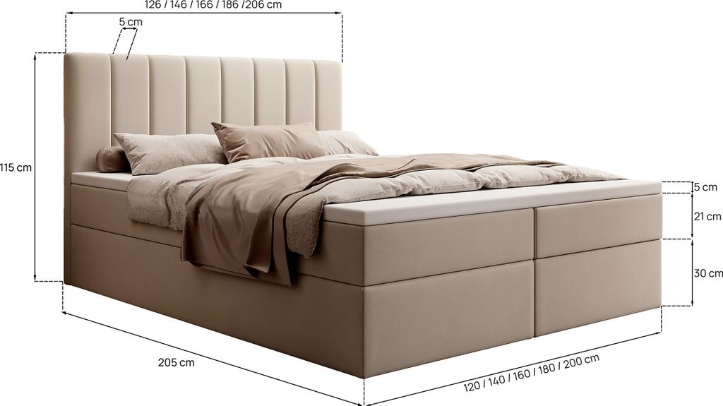 • Mybed Boxspringbett Einzelbett 120x200 - Mitto Conti Mit Bettkasten & Matratze