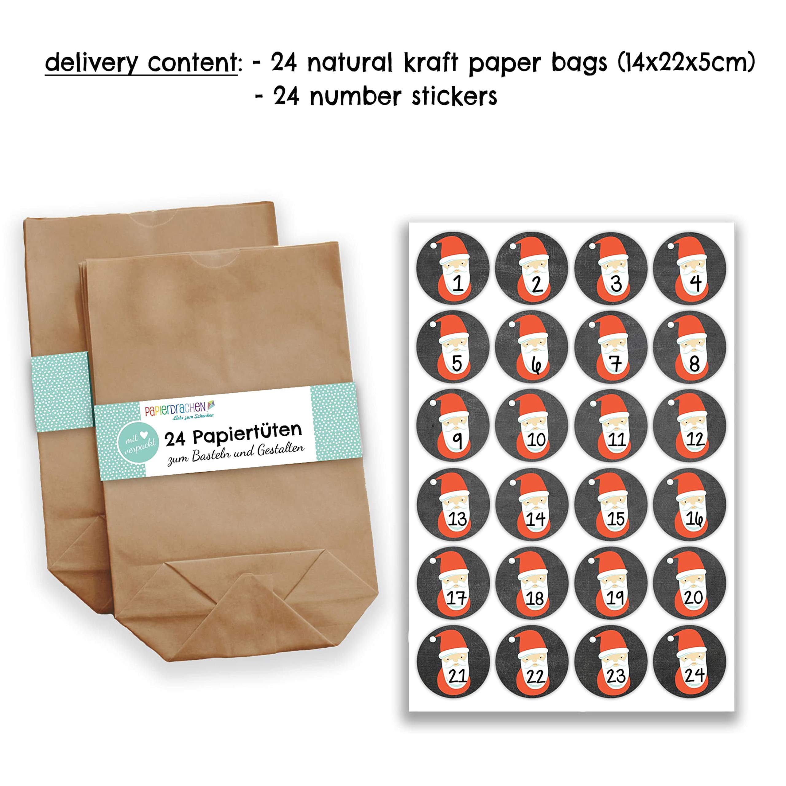 • Papierdrachen Adventskalender Set - 24 Braune Papiertüten Zum Selbstbefüllen