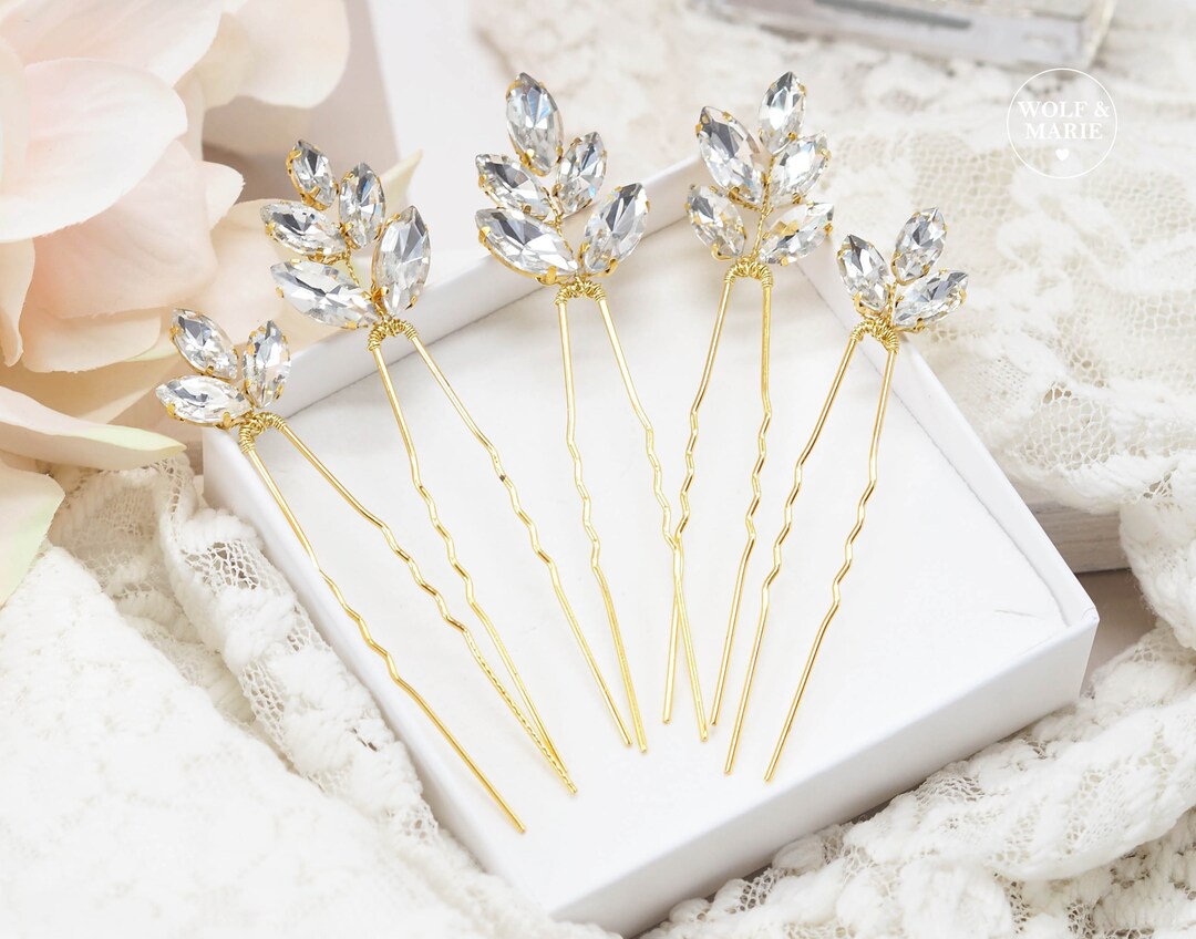 Wunderschönes 3-teiliges Haarnadeln Set für die Braut! Handgefertigt aus Kristall und Strass in eleganter Gold-Optik. Jede Nadel 10,2x5,1cm groß - auffällig aber nicht zu übertrieben. Perfekt für Hochzeiten, Brautjungfern oder besondere Anlässe. Auch toll für Fotoshootings am Strand oder Festival. Hochwertige Verarbeitung - ein Schmuckstück das bleibt. Mach deine Frisur zum Highlight mit diesen funkelnden Haarnadeln!