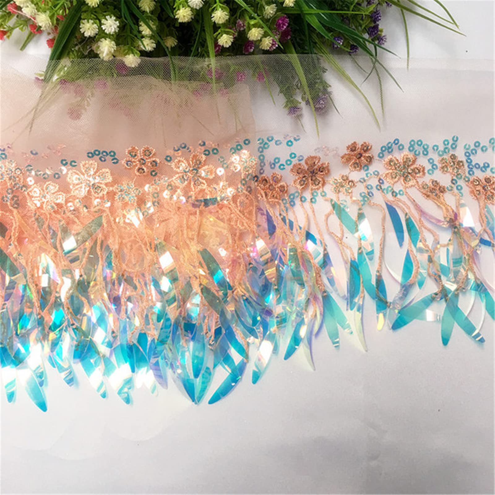 Verwandeln Sie Ihre Nähprojekte in glitzernde Kunstwerke! Diese 13 Meter lange Paillettenrolle ist 1,4cm breit und hat kompakt angeordnete Pailletten in zwei Reihen. Aus hochwertigem PVC-Kunststoff, hitze- und korrosionsbeständig, mit lebendigen Farben und glänzender Oberfläche. Perfekt zum Verzieren von Kleidern, Tischdecken, Vorhängen, Schals, Hüten und Stirnbändern. Auch ideal für Bastelprojekte wie Geschenkverpackungen, Partydekoration, Masken oder Karten. Das Band ist auf Polyester-Spitze genäht, was das Aufnähen auf Stoffe extrem erleichtert. Einfach mit der Nähmaschine oder von Hand annähen und schon glitzert Ihr Projekt. Die Pailletten liegen flach an und behindern nicht beim Tragen. Ob für festliche Kleidung, Bühnenkostüme oder individuelle Accessoires - mit dieser Paillettenrolle setzen Sie glitzernde Akzente. Einfach zuschneiden, annähen und strahlen!
