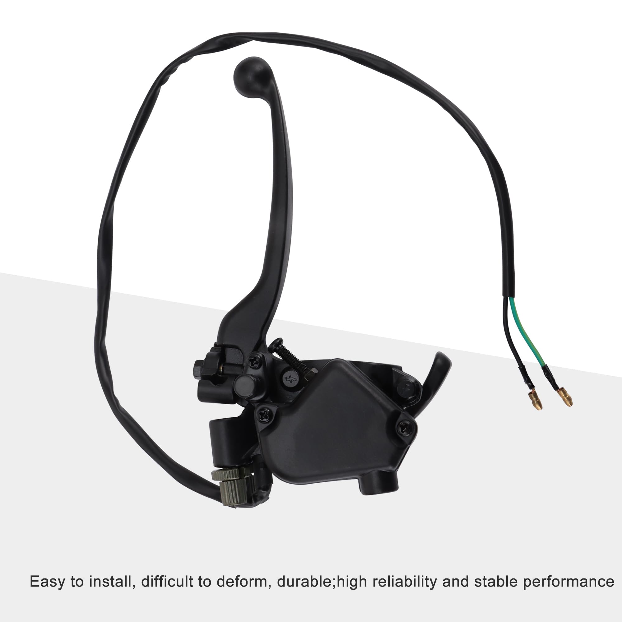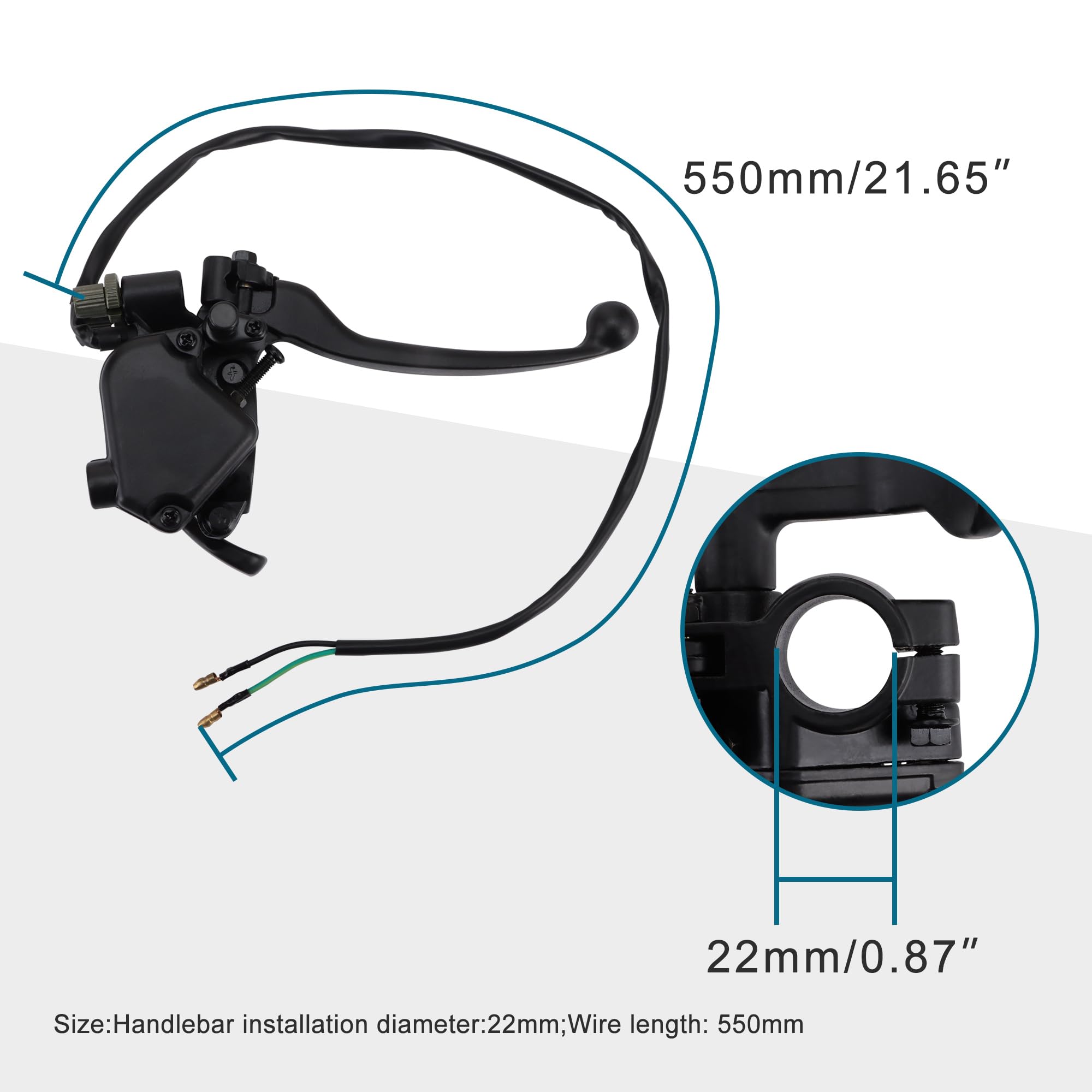 Für alle Mini-Moto, Quad und Go-Kart Fans! Dieses Doppelbremshebel-Set mit Daumengas passt für 50cc, 70cc, 90cc, 110cc und 125cc Modelle - ideal für Taotao und ähnliche Marken. Der Hebel hat 22mm Durchmesser, das Gas-Kabel ist 550mm lang. Aus schwarz oxidiertem Material - rostfrei und langlebig. Einfach zu montieren, keine Spezialwerkzeuge nötig. • Für: 50-125cc ATV, Quad, Go-Kart • Durchmesser: 22mm (7/8 Zoll) • Kabellänge: 550mm • Material: Hochwertige Legierung