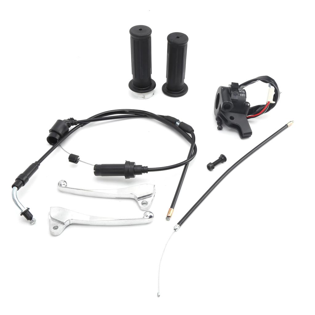 Für alle Mini-Motorrad-Fans! Dieses Komplett-Set passt perfekt für YZinger 50 (ab 1981) und PeeWee PW50 (ab 1990). Wenn die alten Griffe abgenutzt sind oder mal was kaputt geht - hier ist die Lösung!\n\nIm Set enthalten:\n• 2x Gasgriff\n• 2x Bremsgriff\n• 1x Gaskabel\n• 1x Zündschalter\n• 1x Befestigungsschraube\n\nAus hochwertigem ABS und PVC - richtig stabil und langlebig. Die Teile sind originalgetreu nachgebaut und passen genau wie die OEM-Teile.\n\nEinbau? Kein Problem! Einfach den alten Griff abmachen, neuen drauf und festziehen. Der Zündschalter wird am Lenker montiert. Auch für weniger erfahrene Schrauber machbar.\n\nWarum das Set so praktisch ist:\n• Alles auf einmal da\n• Perfekte Passform\n• Keine Kompatibilitätsprobleme\n• Als Backup für die Saison\n\nEgal ob für die erste Reparatur oder als Ersatz für die Rennsaison - dieses Set sollte in keiner Mini-Bike-Werkstatt fehlen!\n\nEinfach bestellen, einbauen und weiter geht's mit dem Fahrspaß!