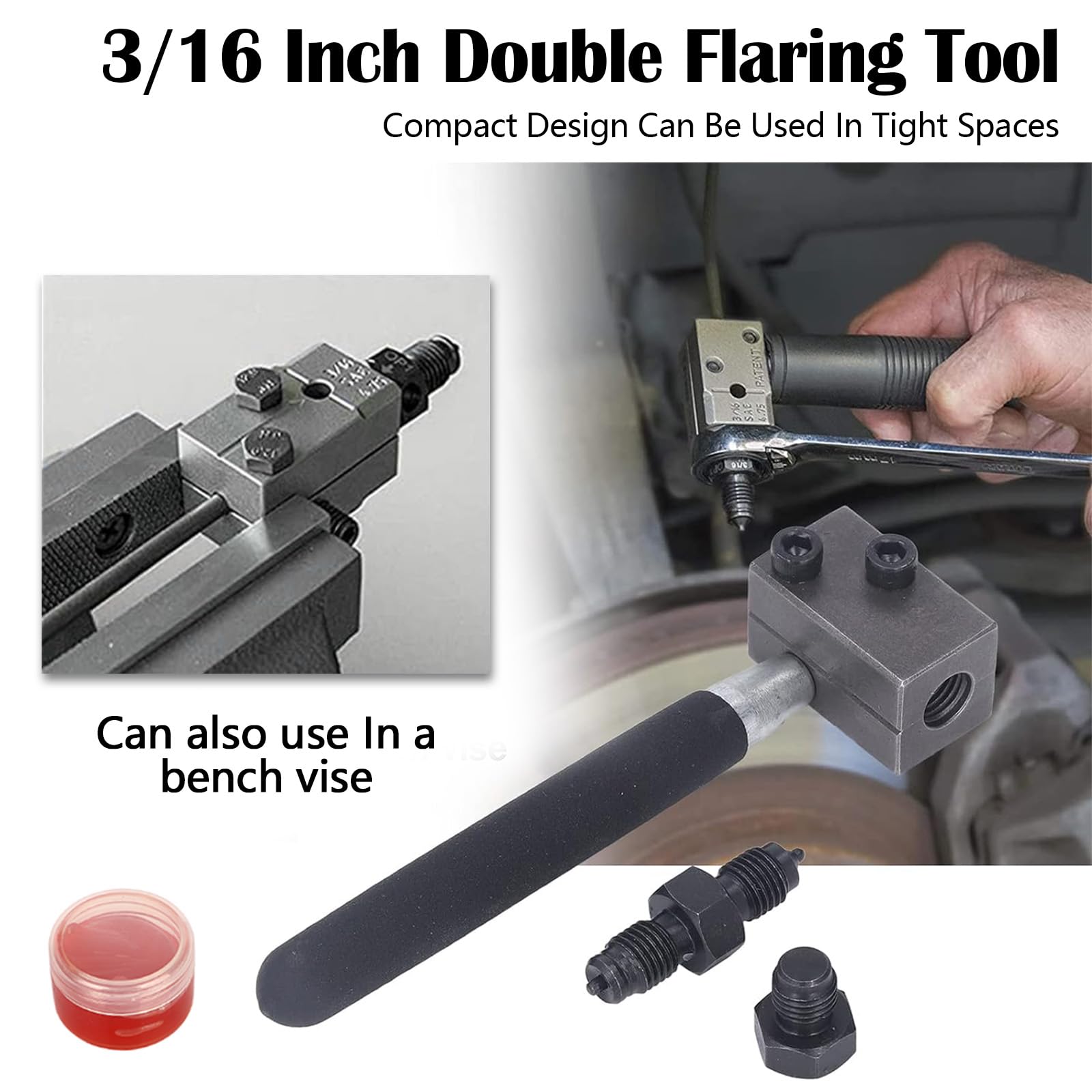 Für alle Heimwerker und Kfz-Profis: Dieses Bördelgerät-Set macht Bremsleitungs-Reparaturen zum Kinderspiel! Speziell für 4,75 mm (3/16 Zoll) Bremsleitungen nach DIN-Norm - perfekt für PKW und LKW. Das kompakte Design ist ideal für enge Einbauräume, du kommst auch an schwer zugängliche Stellen ran. Der rutschfeste Griff liegt super in der Hand und das mitgelieferte Spezialfett sorgt für saubere Bördelungen ohne Verschleiß. Einfach das Rohr einlegen, Positionierungsbolzen fixiert es automatisch richtig, und dann mit ner Stecknuss oder Schraubenschlüssel zusammendrücken - schon hast du ne perfekte Bördelung! Wichtig: Funktioniert super mit Stahl-, Kupfer- und Aluminiumrohren, aber nicht für Edelstahl oder Doppelbördelungen geeignet. Mit dabei im Set: Bördelgerät mit Handgriff, Grundkörper und Bördeldorn, plus Bolzen und Spezialfett. So sparst du dir teure Werkstattbesuche und hast immer das richtige Werkzeug zur Hand. Egal ob für Bremsen, Hydraulik oder andere Rohrleitungen - dieses Set ist ein echter Allrounder!