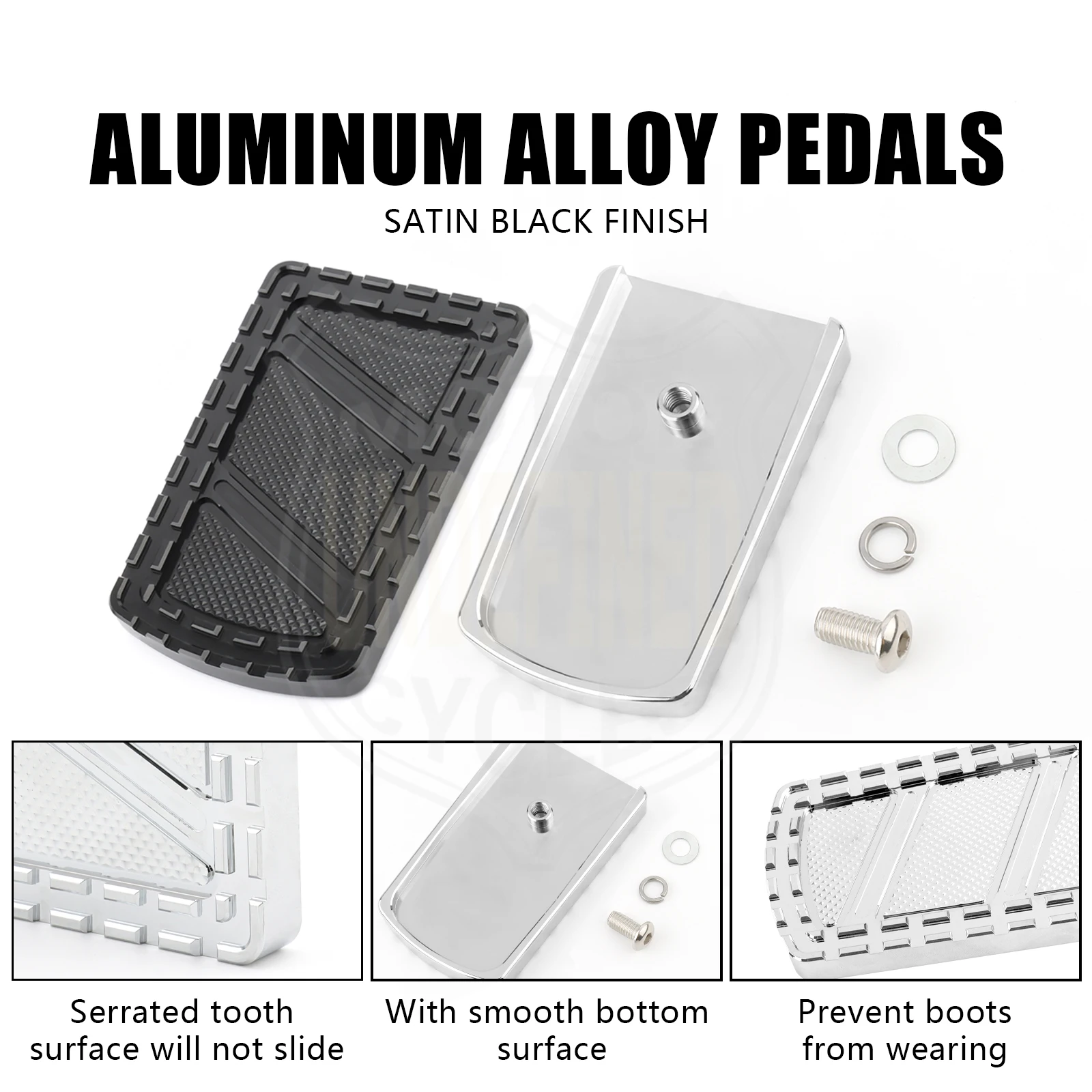 Mach deine Harley noch cooler! Dieses Bremspedal-Cover im MX-Stil ist aus CNC-Aluminium gefertigt und hat austauschbare Edelstahl-Stollen. Passt perfekt für Softail FL 1986-2017, Dyna FLD 2012-2016 und Touring/Trike Modelle ab 1980. Die schwarze eloxierte Oberfläche sieht nicht nur gut aus, sondern ist auch robust. Einfach zu installieren - keine komplizierte Anleitung nötig. Die Stollen geben dir besseren Grip und den typischen Offroad-Look. Verleiht deiner Maschine das gewisse Etwas und ist dabei super funktional. Einfach montieren und ab auf die Straße! Qualität, die man sieht und spürt.