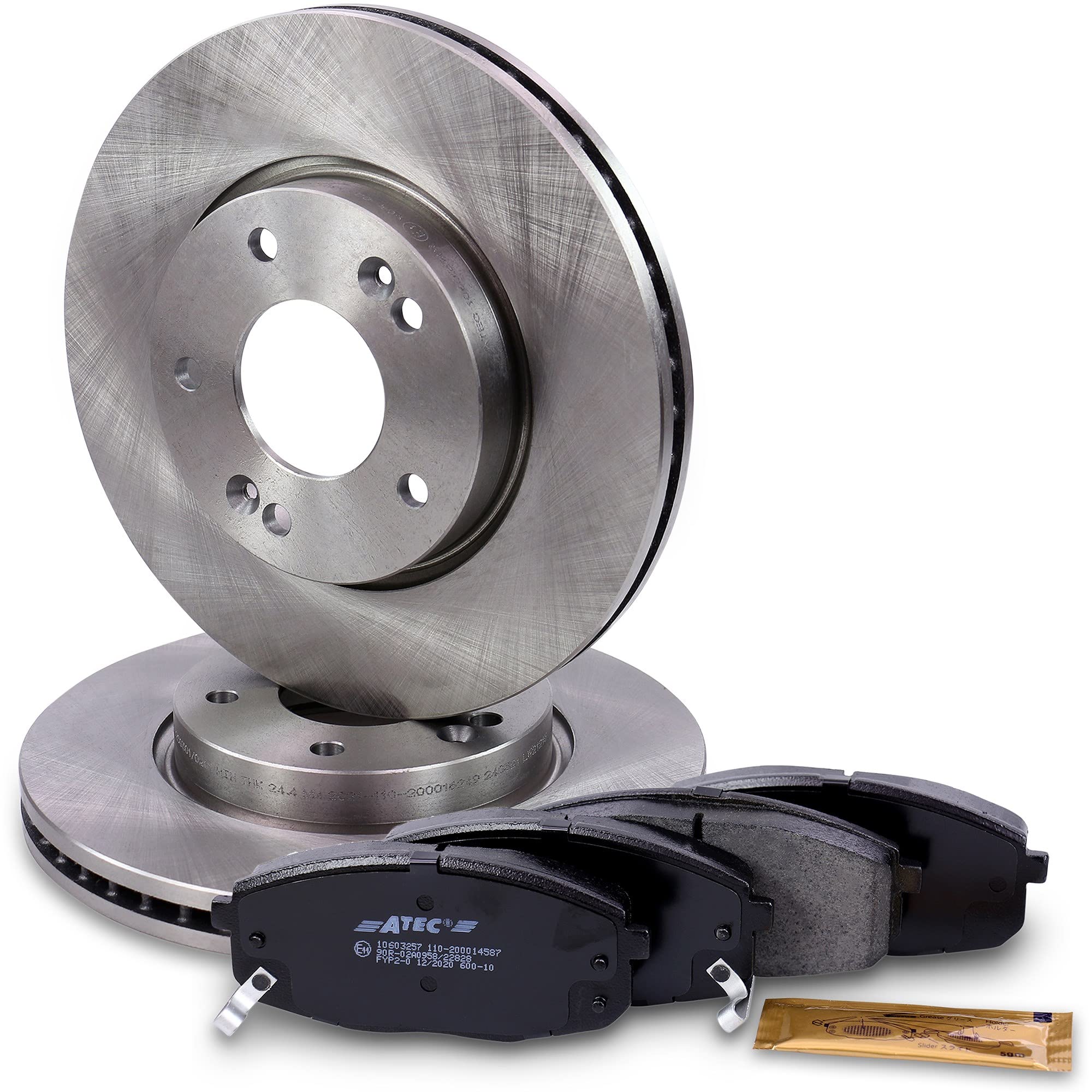 Sicherheit geht vor! Dieses komplette Bremsenset von ATEC Germany gibt deinem Hyundai ix20 oder Kia Soul wieder volle Bremskraft. Enthalten sind 2 belüftete Bremsscheiben (280 mm Durchmesser) und 4 Bremsbeläge mit akustischer Verschleißwarnung.