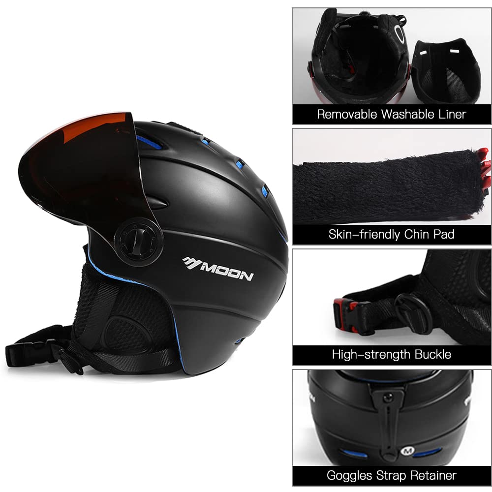 Puh, dieser Skihelm hat echt alles was man braucht! Die In-Mold Konstruktion mit PC-Schale und EPS-Schaum bietet maximalen Schutz bei Stürzen - da fühlst du dich sicher auf der Piste. Die abnehmbare Anti-Fog Brille sorgt für klare Sicht ohne lästiges Beschlagen, egal bei welchem Wetter. Mit 12 Belüftungslöchern und einem einstellbaren Belüftungssystem regulierst du ganz easy die Temperatur im Helm. Das weiche, herausnehmbare Fleecefutter leitet Feuchtigkeit ab und hält dich schön warm. Die dicken Ohrpolster schützen deine Ohren ohne dein Gehör einzuschränken. Das einfach zu bedienende Einstellrad garantiert eine perfekte Passform für Kopfumfänge von 58-64cm. Ob Skifahren, Snowboarden oder andere Wintersportarten - dieser Helm ist dein zuverlässiger Begleiter. In Schwarz oder Orange erhältlich, mit Gewichten zwischen 560-580g je nach Größe. Einfach aufsetzen, einstellen und den Pistenspaß genießen!