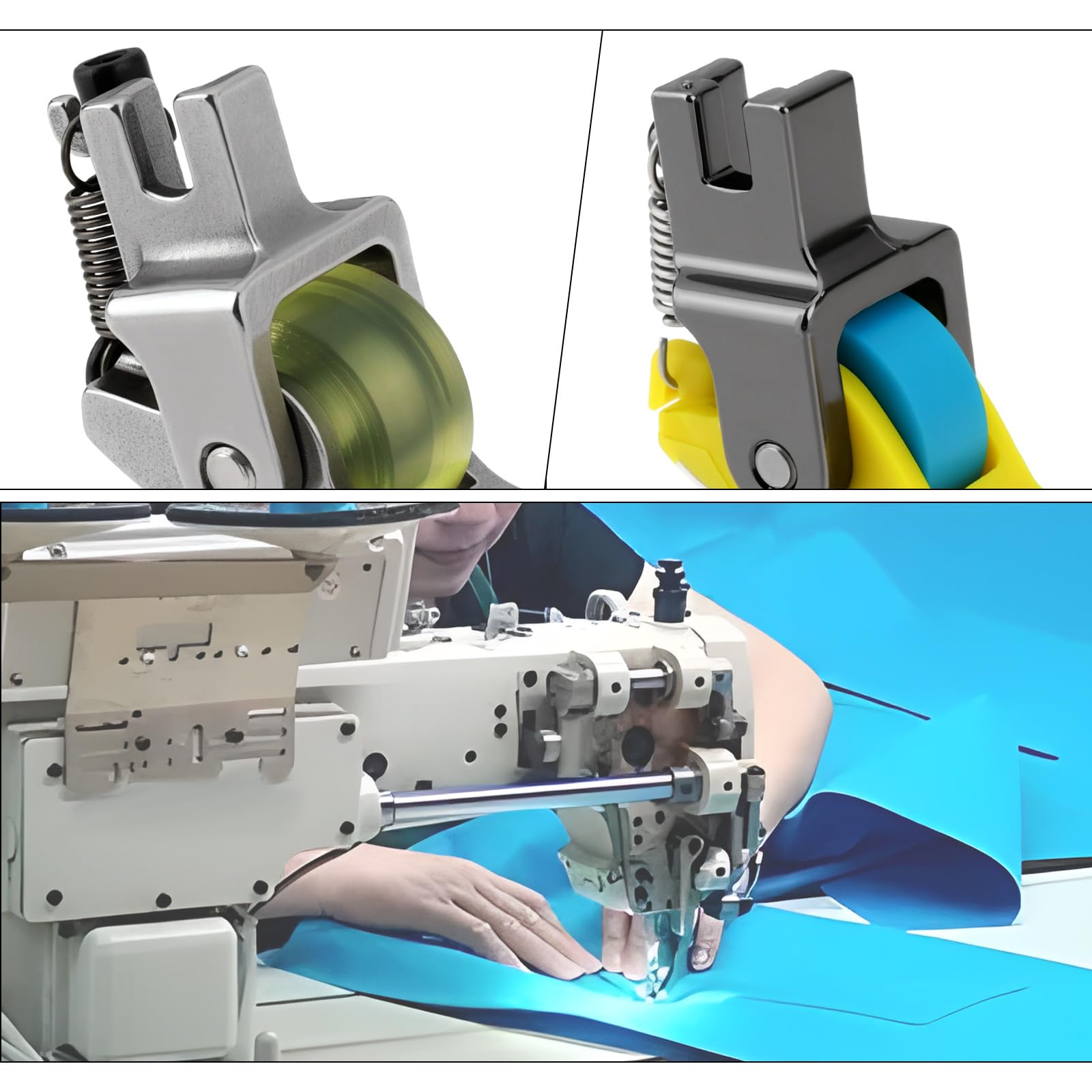 Endlich perfekte Nähergebnisse auch bei schwierigen Materialien! Diese Rollen-Nähfülße von Briny River machen das Nähen von Leder, Vinyl, beschichteten Stoffen und anderen tricky Materialien zum Kinderspiel. Das Set enthält zwei verschiedene Ausführungen: einen 1-Rollen-Fuß und einen 3-Rollen-Fuß für unterschiedliche Anforderungen. Die Rollen reduzieren die Reibung und verhindern so lästiges Stoffbündeln oder Dehnungen. Das schmale Raddesign sorgt für maximale Präzision bei jeder Naht. Kompatibel mit den meisten industriellen Nähmaschinen - einfach den alten Fuß abnehmen, neuen drauf und weiter nähen! Die robuste Stahl/Kunststoff-Konstruktion hält auch bei intensivem Gebrauch lange. Ob in der Schneiderei, Schuhwerkstatt oder im Heimwerkerbereich - diese Füße retten dir echt den Tag!