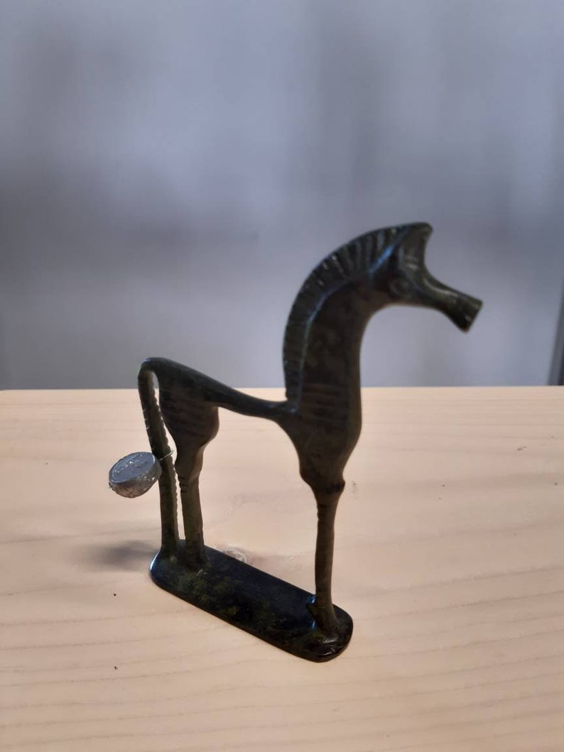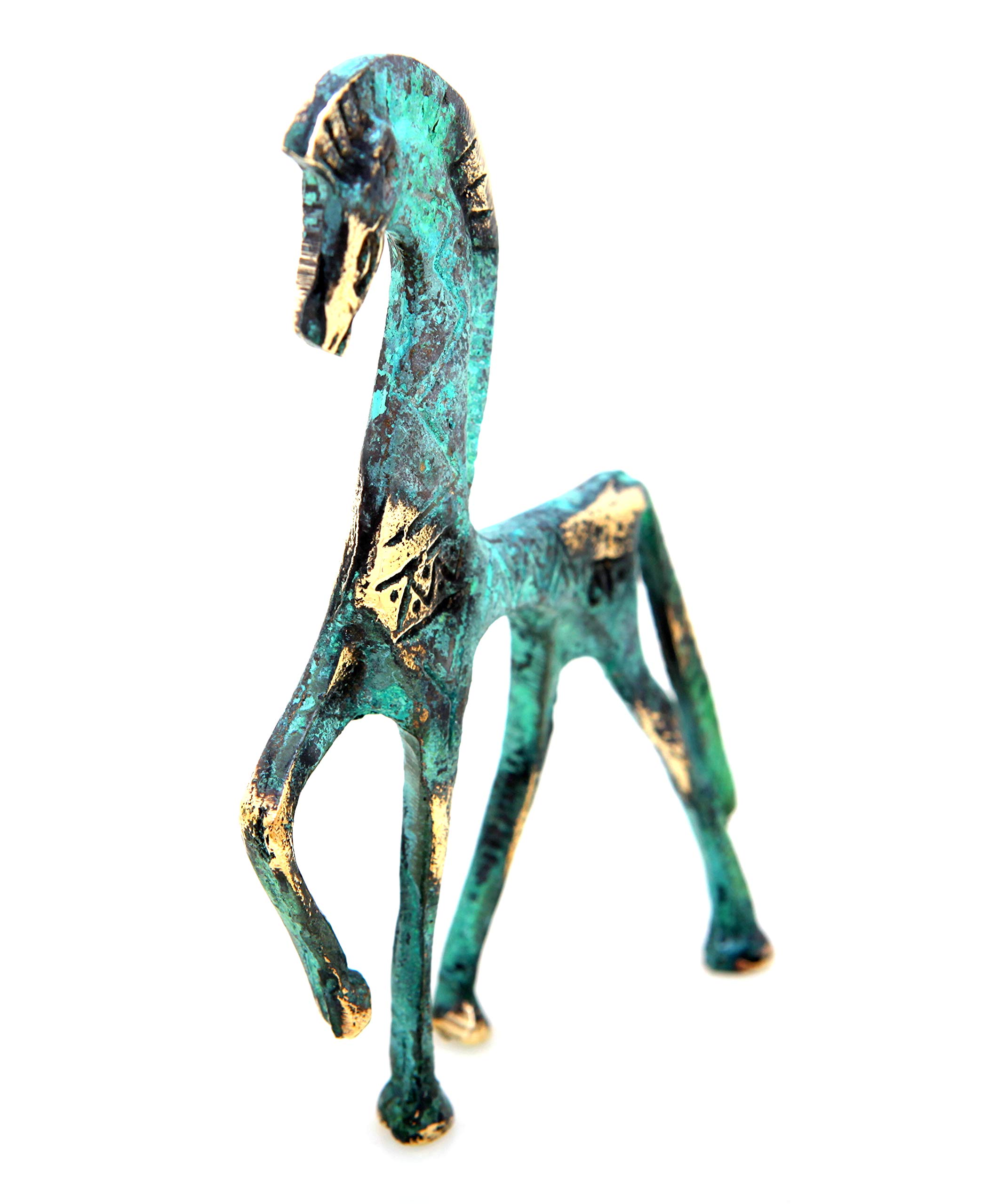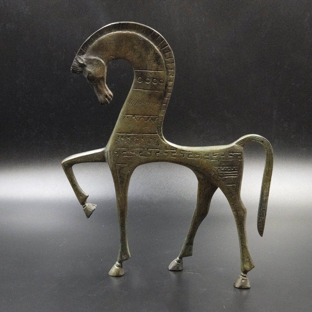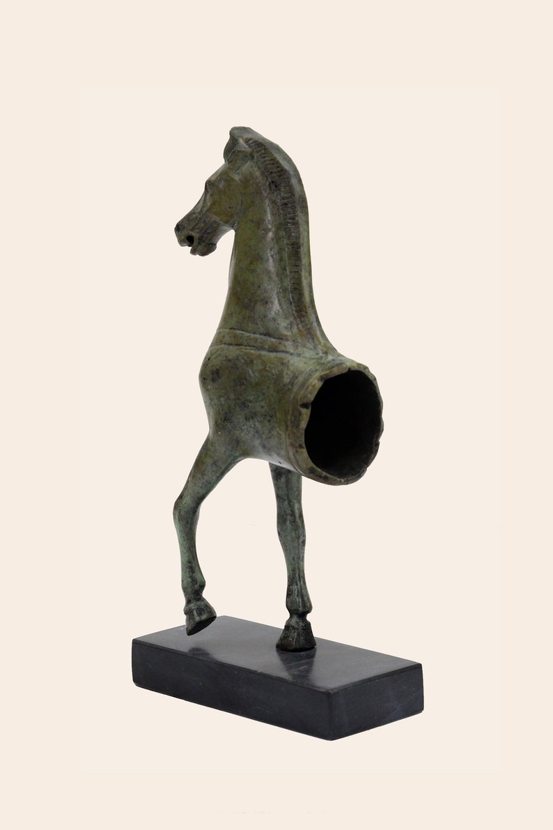 Wow, was für ein besonderes Stück! Diese antike griechische Bronze-Pferd-Statue ist eine originalgetreue Museum-Replica aus der geometrischen Epoche. Mit 12x9cm Größe und 180g Gewicht ist sie perfekt für Vitrinen oder als besonderer Blickfang. Hergestellt in Griechenland mit der traditionellen 'Lost Wax' Technik - genau wie die alten Griechen es gemacht haben! Das Besondere: Die grün-goldene Patina entsteht durch natürliche Oxidation und gibt der Statue diesen authentischen, antiken Look. Jedes Stück ist handgefertigt und damit ein Unikat! Perfekt für Sammler, Geschichtsliebhaber oder einfach alle, die sich für antike Kunst begeistern. Ob im Wohnzimmer, Büro oder als besonderes Geschenk - diese Bronze-Statue zieht garantiert alle Blicke auf sich. Ein echtes Stück Geschichte für zu Hause! Code 123 - ein echter Hingucker der nicht nur gut aussieht, sondern auch eine jahrhundertealte Handwerkskunst repräsentiert. Einfach aufstellen und sich an diesem kunstvollen Detailreichtum erfreuen!
