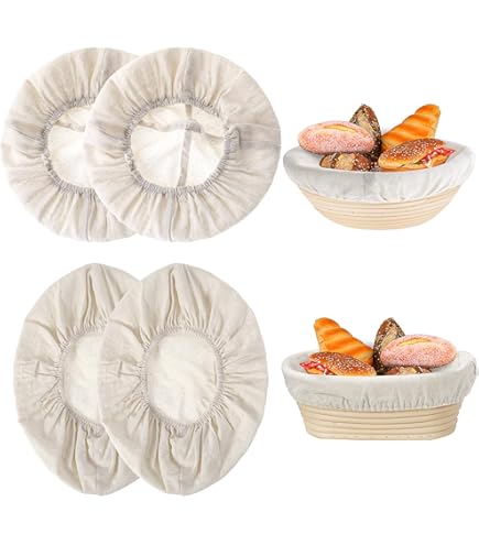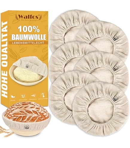 Perfekt für selbstgemachtes Brot! Diese 6 Leineneinsätze für Gärkörbchen machen dein Brotbacken zum Erfolg. In zwei Größen: 23cm und 25cm Durchmesser - ideal für runde Brote. Aus unbehandeltem Flachsleinen und Baumwollgewebe - weich, langlebig und absolut ungiftig. Saugt Feuchtigkeit super auf und sorgt für eine knusprige, gleichmäßige Kruste. Einfach in den Gärkorb legen (Körbchen nicht im Lieferumfang!), Teig rein, abdecken und gehen lassen. Nach dem Aufgehen vorsichtig entformen und aufs Backblech geben. Super für Brot-Anfänger und erfahrene Bäcker gleichermaßen. Mit 6 Stück hast du immer genug für wöchentliches Backen und Ersatz. Einfach verwenden, waschen und immer wieder benutzen - so einfach kann Brotbacken sein! Mach dein eigenes gesundes Brot - mit diesen Einsätzen klappt's garantiert.