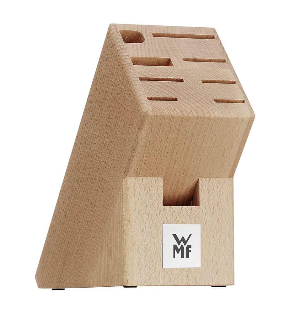 Hey, dieser WMF Messerblock ist genau das Richtige, wenn du deine guten Küchenmesser sicher und ordentlich aufbewahren willst! Aus stabilem Buchenholz gefertigt, sieht er nicht nur klasse aus, sondern hält auch ewig. Der Clou: Er kommt ohne Messer - du kannst also deine eigenen Lieblingsmesser unterbringen. Platz ist für 5-6 Küchenmesser, plus einen Wetzstahl wenn du magst. Der integrierte Bürsteneinsatz ist super praktisch: Da bleiben keine Krümel oder Reste im Block hängen. Mit dem Tragebügel kannst du ihn sicher an seinen Platz bringen. Die Maße von 31x12x24 cm passen auf jede Arbeitsplatte ohne viel Platz wegzunehmen. Wichtig: Immer nur trockene Messer reinstellen, dann hast du lange Freude daran! Der Block schützt die scharfen Klingen vor Beschädigungen und du hast immer alles griffbereit. Perfekt für alle, die Wert auf Ordnung in der Küche legen! Und das Beste: Das zeitlose Design passt zu jedem Küchenstil - ob modern oder rustikal. Einfach ein Qualitätsprodukt vom deutschen Hersteller, das sich im Alltag bewährt!