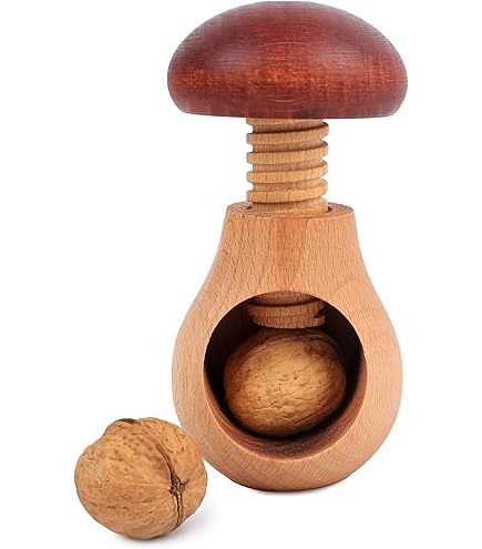 Endlich Nüsse knacken ohne Verletzungsgefahr! Dieser niedliche Nussknacker-Pilz aus massivem Buchenholz ist super einfach zu bedienen - selbst für kleine Kinder ab 3-4 Jahren oder ältere Menschen. Einfach die Nuss in die Lupe legen, das Loch in den Handballen drücken und drehen. Kein Herumfliegen von Schalensplittern, keine eingeklemmten Finger wie bei einer Zange! Mit ca. 60mm Durchmesser und 110g Gewicht liegt er gut in der Hand. Aus nachhaltiger Forstwirtschaft und ein echter Hingucker als Herbst- oder Weihnachtsdekoration. Praktisch, sicher und hübsch anzusehen - was will man mehr? Ein perfektes Geschenk für Nuss-Liebhaber und alle, die es praktisch mögen!