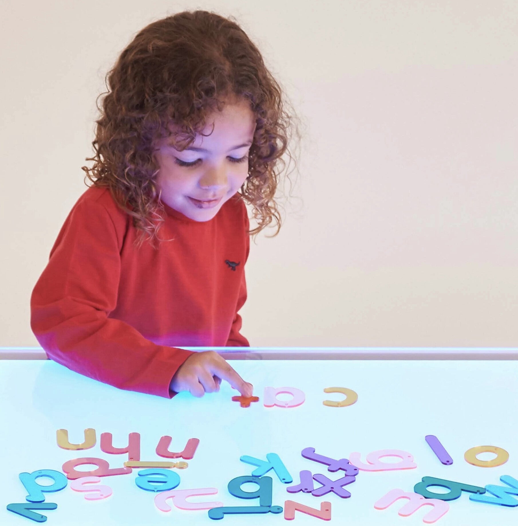 Wow, diese Glitzer-Buchstaben von tickit sind ja mal richtig magisch! 26 Buchstaben von A-Z in 7 Regenbogenfarben - rot, orange, gold, grün, blau, indigo und violett. Jeder Buchstabe ist 7cm groß und hat ein kleines Loch zum Auffädeln - super für Mobile, Fensterbilder oder Schattenspiele. Die Vokale sind in Türkis - perfekt zum Lernen und Unterscheiden! Aus klarem Acryl gefertigt, funkeln sie im Licht richtig schön. Ideal für Kinder ab 3 Jahren zum Buchstaben lernen, Wörter bilden oder einfach nur zum kreativen Spielen. Kann mit anderen tickit-Sets kombiniert werden - erweiterbarer Spielspaß! Fördert die Buchstabenerkennung und macht Lernen zum Vergnügen. Einfach in die Hand nehmen, bewundern und loslegen - der Kreativität sind keine Grenzen gesetzt! Damit wird das ABC-Lernen zum bunten Abenteuer!