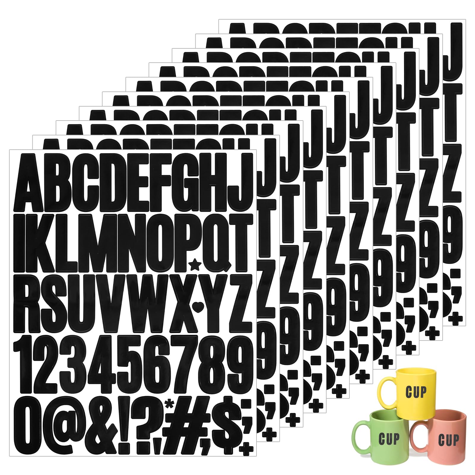 Kreativ sein war noch nie so einfach! Mit diesem riesigen Set aus über 500 Buchstaben- und Zahlenaufklebern in Schwarz und Weiß kannst du alles personalisieren, was dir in die Finger kommt. Die Aufkleber sind aus hochwertigem PVC-Vinyl gefertigt, komplett wasserfest und wetterbeständig - perfekt für drinnen und draußen! Jeder Buchstabe und jede Zahl misst 5cm, also schön groß und gut lesbar. Einfach die gewünschten Zeichen aussuchen, abziehen und auf jede glatte Oberfläche kleben - ohne Kleber oder Werkzeug! Ideal für Scrapbooking, Grußkarten, Home-Deko, Schilder, Briefkästen oder zum Verzieren von Wasserflaschen und Laptops. Die starke Haftkraft sorgt dafür, dass die Aufkleber sicher halten, lassen sich aber auch rückstandsfrei entfernen. Mit 10 Blättern voller Buchstaben, Zahlen und Sonderzeichen hast du genug Material für viele kreative Projekte. Tolle Geschenkidee für alle Bastelfreunde!