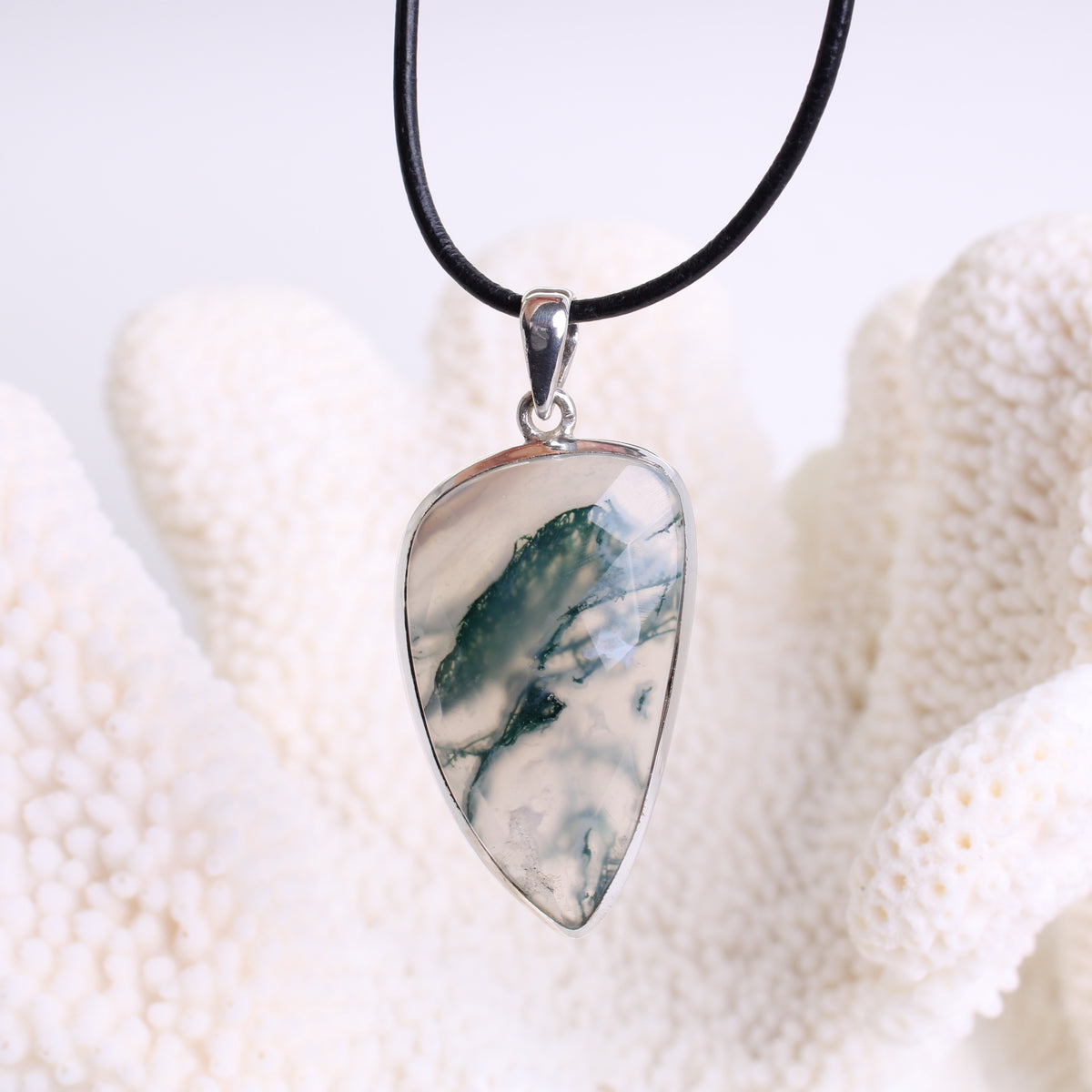 Budawi Moosachat Donut Anhänger 20mm Mit Schwarzem Lederband - Naturstein Schmuck Unikat