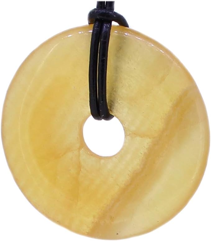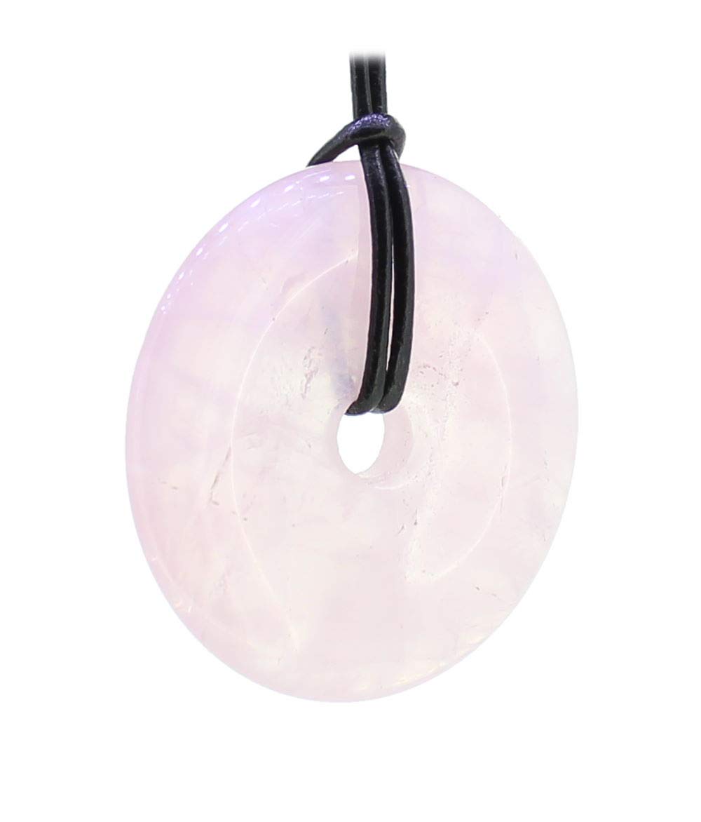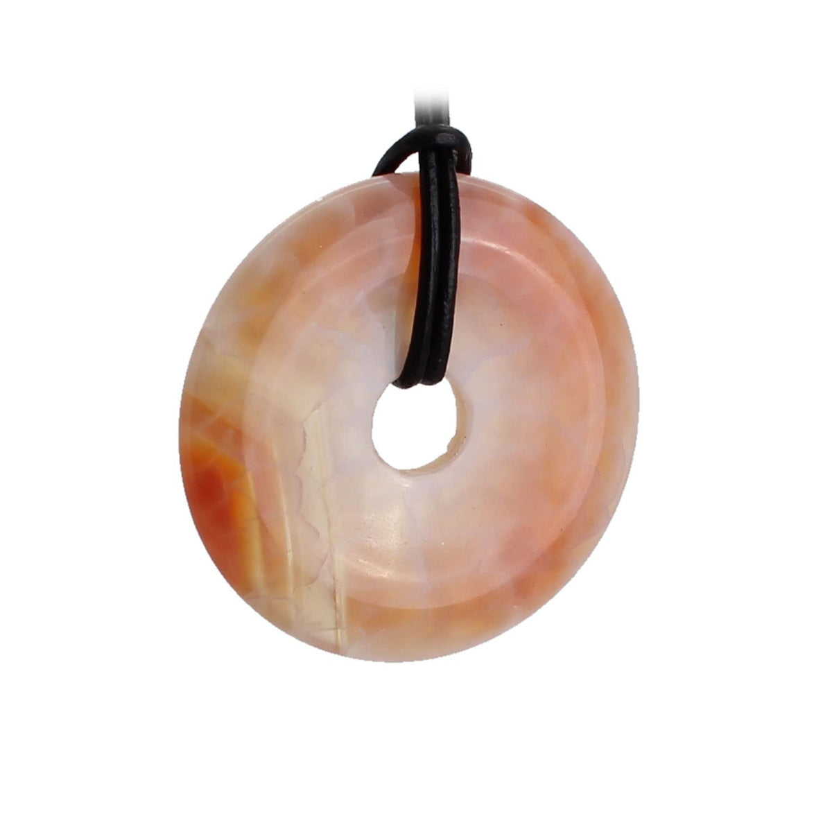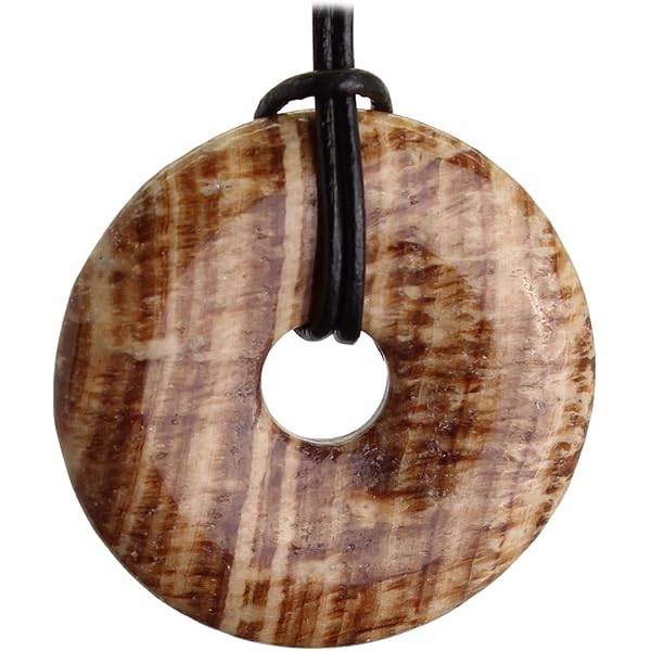 • Budawi Moosachat Donut Anhänger 20mm Mit Schwarzem Lederband - Naturstein Schmuck Unikat