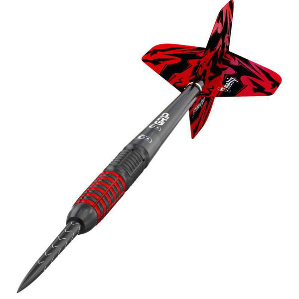 Professionelle Dartpfeile die was hermachen! Die Bull's Magma Soft Darts bestehen aus 90% Wolfram und bieten damit höchste Qualität und Präzision. Mit einem Gewicht von 18g liegen sie perfekt in der Hand. Die schwarze Titanium-Beschichtung verleiht den Pfeilen nicht nur eine einzigartige Optik, sondern auch zusätzliche Langlebigkeit. Hergestellt mit hochpräziser CNC-Frästechnik für perfekte Symmetrie und eine Gewichtsabweichung von unter 0.1g. Die innovativen Tefo-X Shark Soft-Spitzen bieten maximale Formstabilität und reduzierte Vibrationen. Komplett mit stylischen 150 Micron Metrixx Flights in Fledermaus-Design. Die schwarzen und roten Gripzonen geben dir optimalen Halt für präzise Würfe. Einfach ein Top-Produkt für anspruchsvolle Dartspieler!