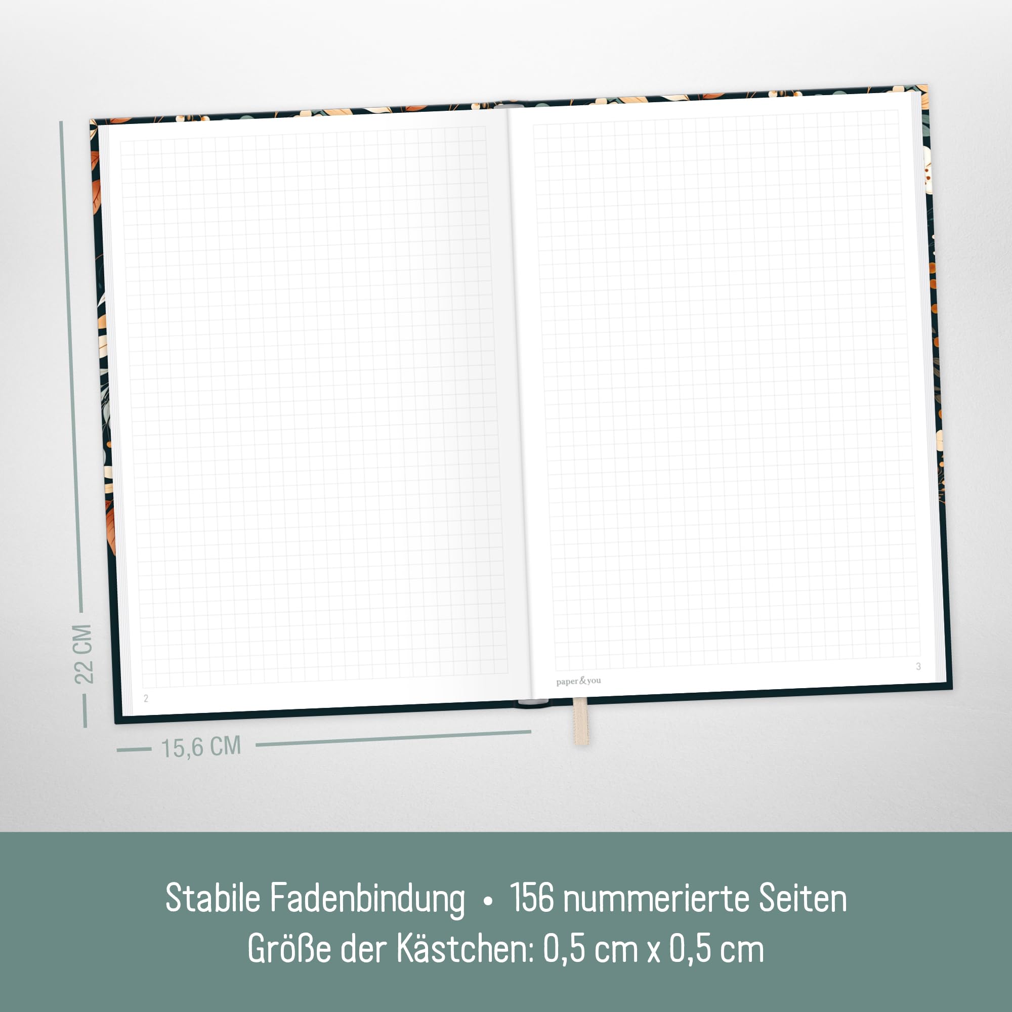 Dein neuer treuer Begleiter für alle Ideen und Gedanken! Dieses paper&you Notizbuch im praktischen A6+ Format hat alles, was du brauchst. Mit 156 nummerierten Seiten im karierten Layout - perfekt für Notizen, Skizzen oder als Bullet Journal. Das stabile Flexo-Cover ist spritzwasserfest und abwischbar - ideal für unterwegs. Mit praktischem Gummiband zum Verschließen und Lesebändchen für wichtige Seiten. Die hochwertige Fadenbindung hält alle Seiten sicher zusammen. Das 90g/m² Premium-Papier ist FSC-zertifiziert und klimafreundlich produziert. Perfekt für Handlettering, Tagebuchführung oder einfach nur zum Kritzeln. Das süße Sweet Flowers Design macht Lust auf kreatives Schreiben. Einfach das Smartphone weglegen und zur Stift greifen! Ideal als Geschenk oder einfach für dich selbst. Verschiedene Motive verfügbar - super zum Sammeln. Mach dir das Leben einfacher mit diesem durchdachten Notizbuch!