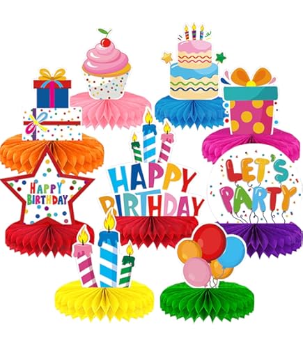 Macht jede Geburtstagsparty bunt und fröhlich! Dieses Set mit 9 wunderschönen Bienenwabe-Mittelstücken verwandelt deinen Partytisch im Handumdrehen in eine fröhliche Festmeile.