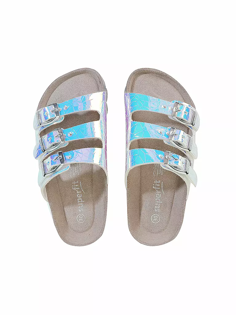 Total süße Jellies für kleine Fashion-Fans! Diese Superfit Pantoffeln sehen nicht nur cool aus, sie sind auch super praktisch. Perfekt für zu Hause, Kindergarten oder Schule - und bei schönem Wetter sogar als sommerliche Sandale draußen! Die verstellbaren Schnallen passen sich jedem Fuß an, und die rutschfeste Sohle färbt nicht ab. In WMS-Weite M IV gefertigt, also ideal für normale Kinderfüße. Die bunten Designs machen einfach Laune, und das strapazierfähige Material hält auch wildem Herumtoben stand. Ob mit Glitzer-Effekt oder dezent - hier findet jedes Mädchen seinen Lieblingsstil. Einfach anziehen und loslaufen! Die perfekten Alltagsbegleiter für kleine Füße - drinnen und draußen!