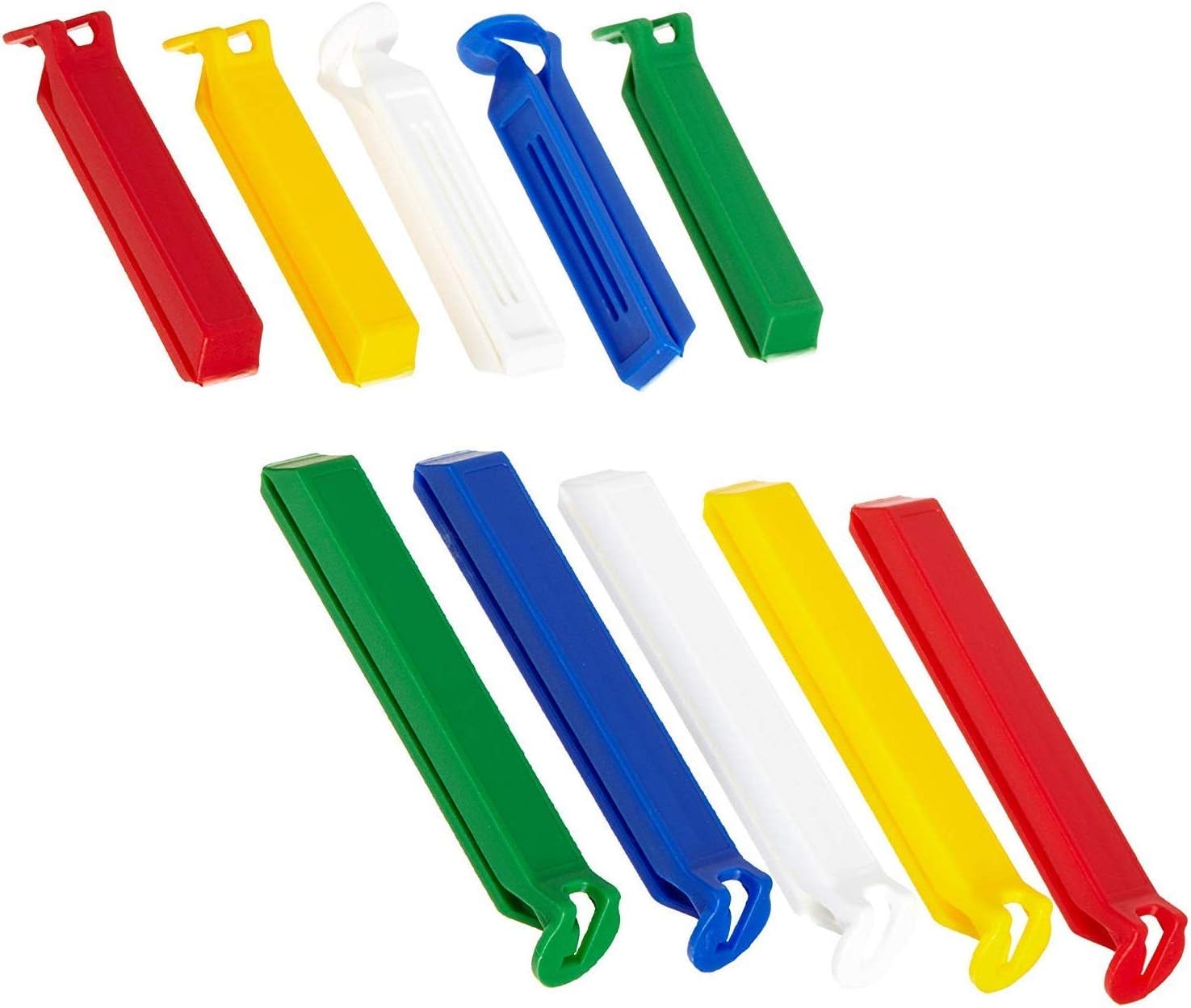 Schluss mit aufgeweichten Cornflakes und lustloser Babynahrung! Diese praktischen Aromaclips von Fackelmann halten deine Vorräte frisch und aromatisch. Einfach die Tüte zusammenrollen und den Clip drüber - schon ist alles luftdicht verschlossen. Perfekt für Gefriertüten, Chipstüten, Kaffeepackungen oder Müsliverpackungen. Die 10 bunten Clips in Weiß, Blau, Gelb, Grün und Rot helfen dir, Ordnung in der Küche zu halten. Aus robustem Kunststoff und super einfach zu reinigen - einfach unter fließend Wasser abspülen. Mit den Maßen 11/8 x 1,5 x 1,5 cm passen sie auf fast jede Tüte. Seit 1919 steht Fackelmann für praktische Haushaltslösungen, die wirklich funktionieren!